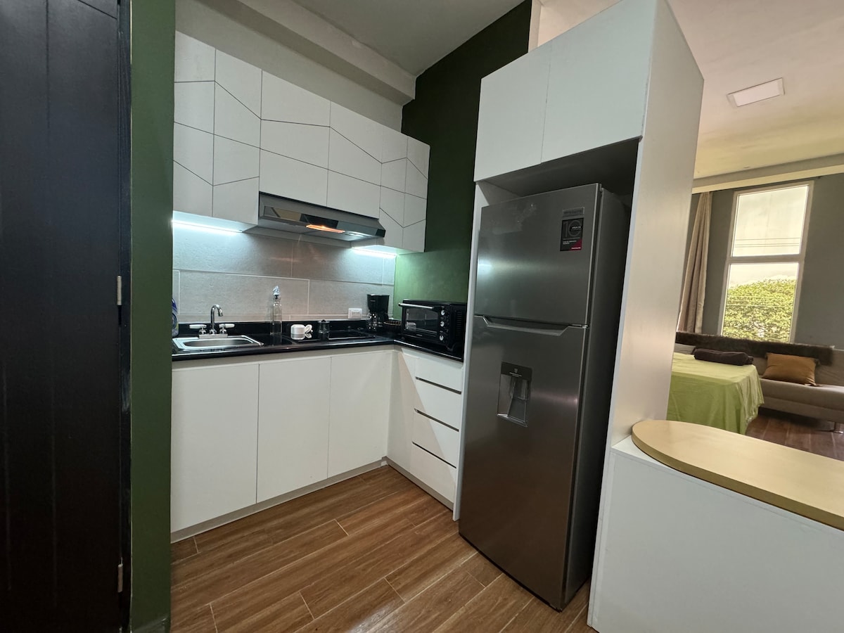 Vive la estadía más cómoda y confortable en tu visita a Xela 🌅🌠 Este apartamento moderno 🏢ofrece WIFI rápido, Smart TV con cable y cocina equipada Disfruta de áreas como patio, coworking💻 y seguridad 24/7🔐. A pasos del parque central de Xela🚶🏻♂️➡️🚶🏻♀️➡️, ideal para vacacionar, descansar o trabajar con estilo.