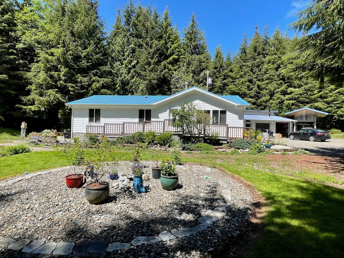 Welcome to our "fishing shack"! This custom built home features and enormous covered deck, living room with ample seating, a kitchen with stainless appliances, a custom bathroom shower, and sleeping for up to 5 people In three separate sleeping areas. There property is very quiet. There is camper on the property that is available for rent as well. Located just 5 minutes from Rialto Beach, and less than 15 minutes from La Push. 10 mi from Forks, prime spot for fishing and coastal exploration.