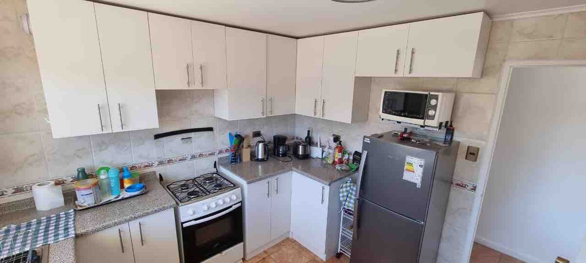 Flott leilighet i første etasje med terrasse, grill og hage. Med hele familien på dette rolige stedet å bo. Utmerket beliggenhet, I MAITENCILLO. Leilighet med sikkerhetstjeneste døgnet rundt og overvåkningskameraer, plassert i et rolig og familievennlig område. Cerro Tacna, langt unna støyen. Leilighetskomplekset har et svømmebasseng, en tennisbane og en barneavdeling. Entré, stue og spisestue i ett rom, kjøkken utstyrt med gass og komfyr, tre soverom, hovedsoverom med eget bad, pluss et ekstra, komplett bad.