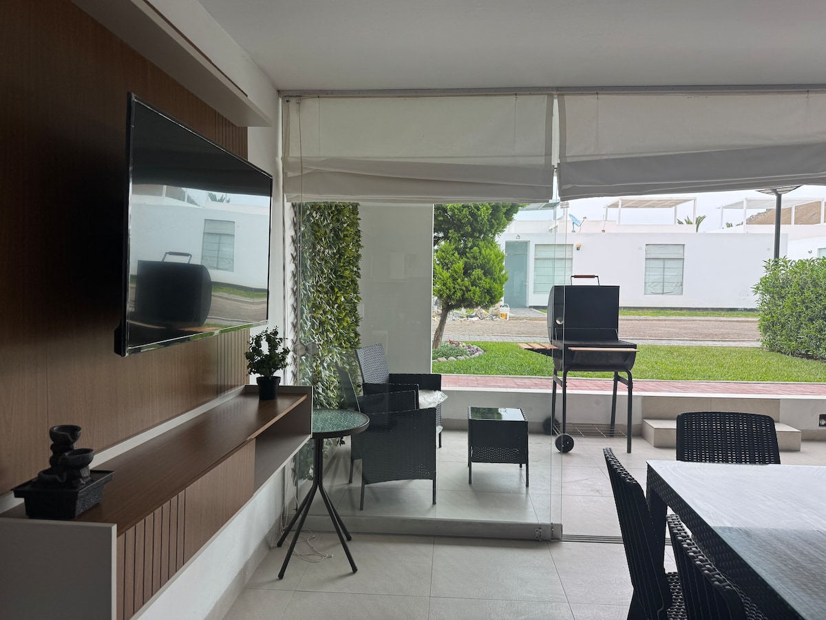 Strandhus foran parken i privat condominium Playa Azul, 15 meter fra strandpromenaden, stor terrasse med stor grill, barnebasseng med havutsikt. Det er fellesområder for sport, svømmebasseng og spill for barn, svømmebasseng og spill for voksne, svømmebasseng og voksne spill, restaurant og marked.(sommersesong) Ligger 5 min fra Cerro Azul, 15 min fra Tottus og 20 min fra Wong Asia. Ideell for å tilbringe pandemien som en familie, har en TV og direkte med HBO Premium-pakke, valgfritt TRÅDLØST NETTVERK 24 timers vakthold.