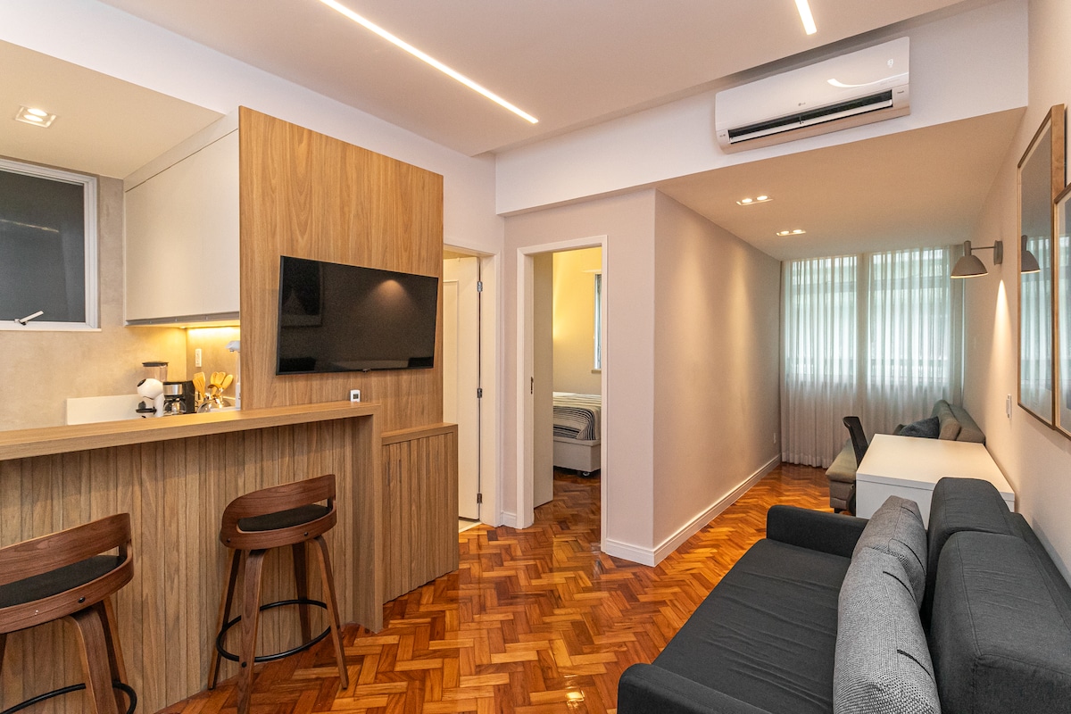 Enjoy Rio Copacabana / Ipanema With style in this beautifully designed, fully equipped apartment located in one of the most desirable areas of the city just 100 meters from Copacabana Beach and 300 meters from Ipanema. Ideal for couples, friends, families, and business travelers looking for comfort, design, and an unbeatable location. 2 comfortable bedrooms with Queen-size beds . Secure building with 24/7 doorman • Air conditioning in every room • High-speed Wi-Fi
