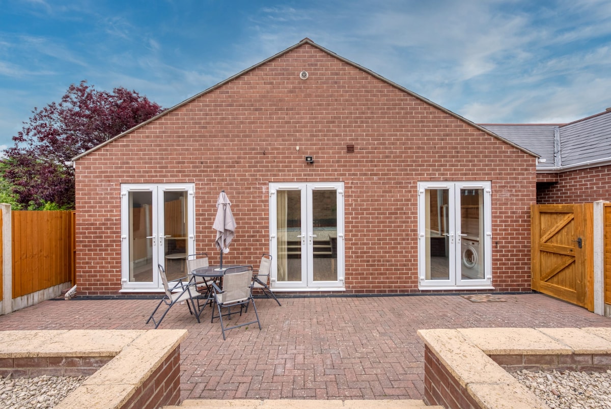 Len deg tilbake og slapp av på dette rolige, elegante stedet. Selvstendig enhet i hagen til vertens eiendom. Halvlandlig beliggenhet med enkel tilgang til alle tjenester og bare 15 minutter fra sentrum av Nottingham. Flotte vei- og bussforbindelser til Leicester, Derby og bredere East Midlands. Lys, moderne og godt utstyrt plass med rikelig med parkering på og utenfor veien – perfekt for enslige eller par. Ekstra sovesofa for barn eller ekstra voksne. Velutstyrt kjøkken og tilgang til felles hage. Veloppdragne hunder er velkomne.