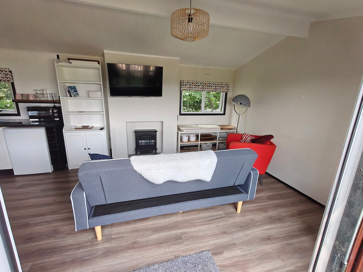 Annekset, som er atskilt fra hovedhuset, ligger i en vakker, anlagt hage. Det romslige soverommet har en dobbeltseng og en smart-TV (du har også tilgang til Sky, Netflix, Apple+, Paramount). Badet har en dusjkabinett. Den separate stuen har et spisebord, en sofa og et lite kjøleskap. Vi sørger for te- og kaffefasiliteter, bestikk og servise (for takeaway osv.). Parkering er foran eller på siden av huset. Det er tilgang til sterk Wi-Fi. Kjæledyr er velkomne.