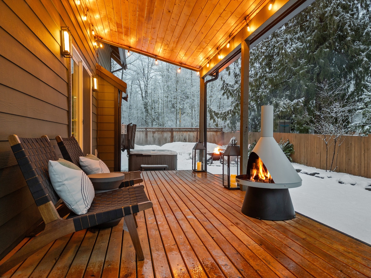 Privat. Fredelig. Romantisk. Utformet for uforglemmelige ferier. Flykt til din egen avsidesliggende spa-hytte bare minutter fra Mount Rainier nasjonalpark. Etter en dag med eventyr kan du gå tilbake til det private boblebadet, den skreddersydde saunaen i sedertre og bålplassen under skogens løvtak. Gjennomtenkte detaljer, koselig belysning, et fullt utstyrt kjøkken, kaffebar, spill og strømming gjør det enkelt å finne seg til rette og bli en stund. Mange gjester kommer tilbake år etter år for jubileer, bursdager og rolige omstarter!