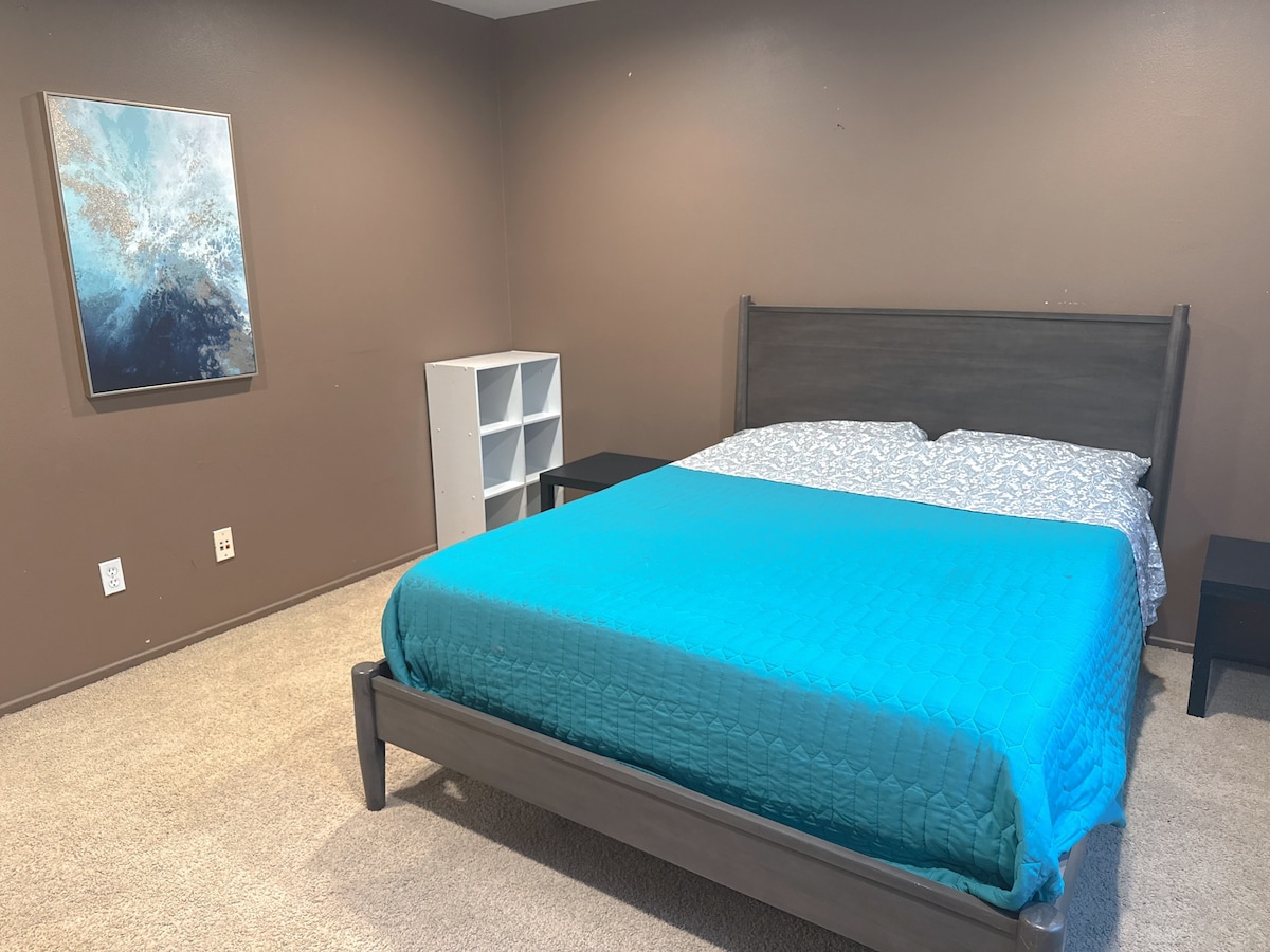 Koselig privat gjesteområde med egen nøkkelfri inngang til enheten. 1 soverom med queen-seng. Kjøleskap og mikrobølgeovn er tilgjengelig. Badet er fylt med toalettpapir, håndklær, sjampo og såpe Et strykejern og hårføner er tilgjengelig for bruk i skapet. Gjesteområdet er privat med separat, men koblet til hovedhuset. Sentralvarme - klimaanlegget styres i hovedhuset. Vi er en 10 minutters kjøretur til Ont flyplass, Ontario konferansesenter, Toyota arena og Ontario Mills.