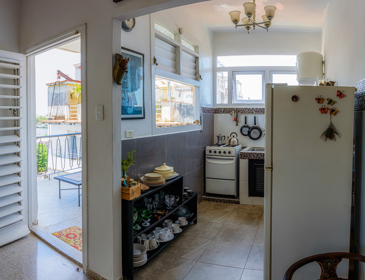 Cozy and stylish apartment in the heart of Havana Vieja, perfect for families or groups of friends seeking an authentic Cuban experience. With two spacious bedrooms, we are just steps away from some of Havana's most iconic landmarks and colorful streets. Enjoy the breathtaking views of Havana from our terrace and our famous breakfast.