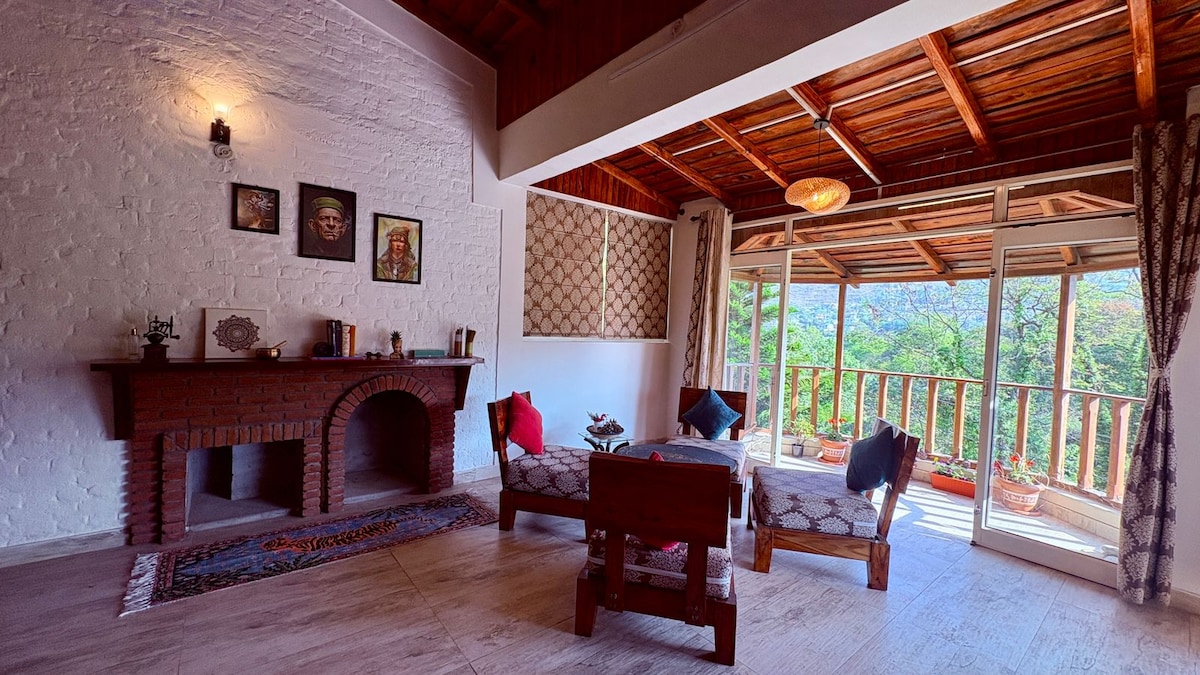 Hjemmet vårt ble omtalt i interiørmagasinet "Inside Outside". Kom deg bort fra alt og langt fra den gale folkemengden. Nyt utsikten over dalen og de fantastiske Kumaon-toppene fra alle rommene. Dette er et tilfluktssted for dagsdrømmere, naturelskere, fuglekikkere. Det er ingen TV i huset. De vakre skogsturene og å tilbringe tid i naturen er alt du trenger! Våkne til lyden av fuglene og se østover for den spektakulære soloppgangen! Ikke egnet for småbarn og yngre barn.