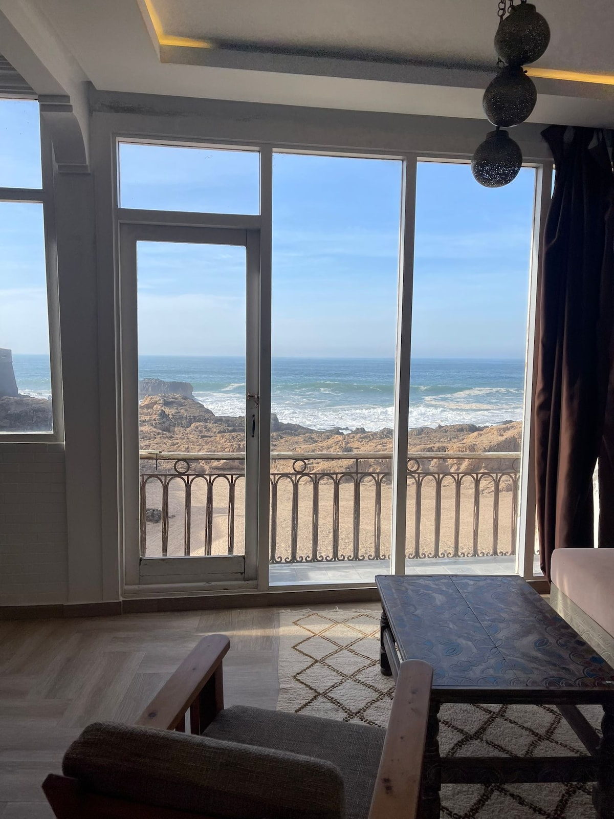 Denne nyåpnede leiligheten i den gamle medinaen tilbyr fantastisk havutsikt og et romslig 30 kvm solfylt rom, som inviterer deg til å slappe av med den fredelige energien fra havet. I første etasje finner du et livlig musikkrom hvor lokale og reisende musikere samles for å spille – et ideelt sted for musikk- og kulturelskere. Vi snakker engelsk, fransk, arabisk og japansk. Ett minutts gange fra den historiske bymuren og seks minutter til hovedtorget, hvor Gnaoua-festivalens scene kommer til live.