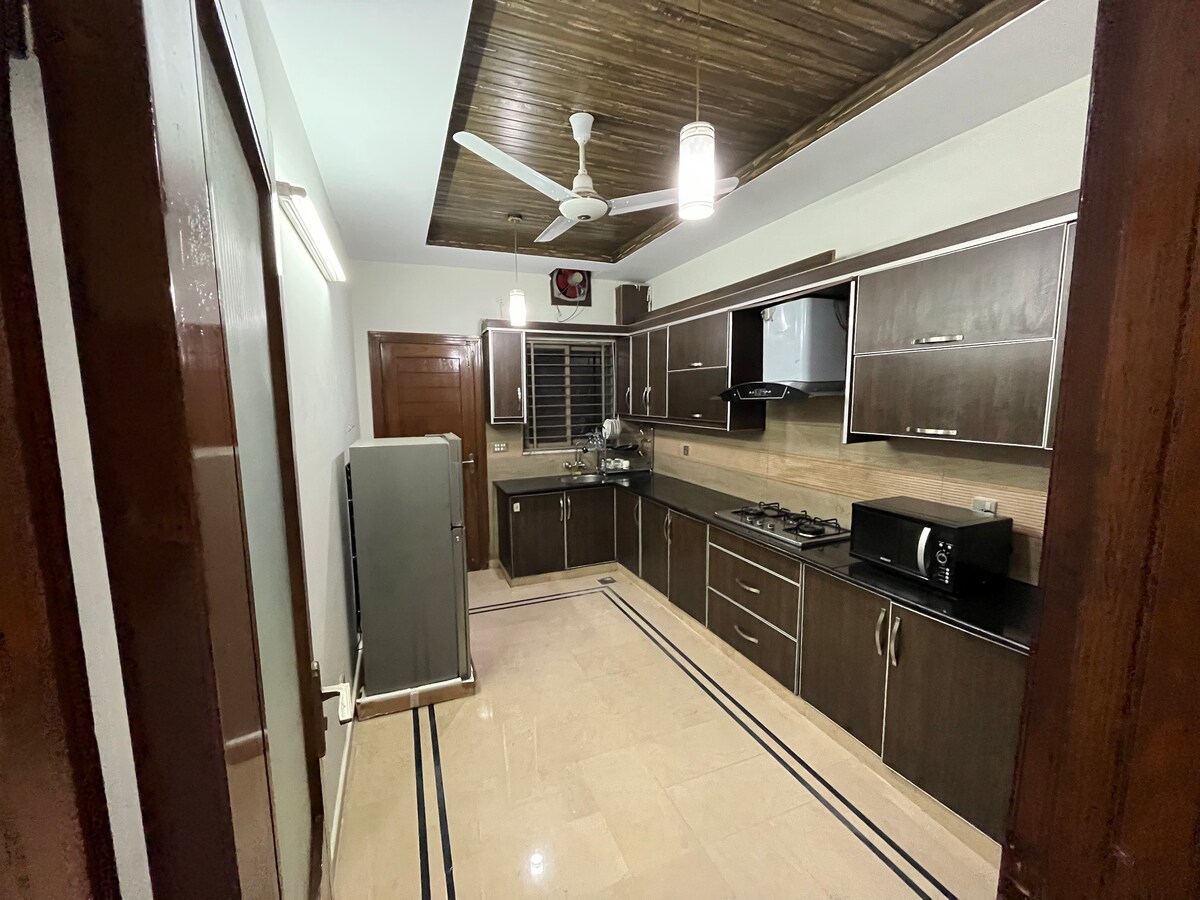 Flykt til et luksuriøst tilfluktssted med dine kjære i dette fullt møblerte hjemmet. Opplev fred og komfort med førsteklasses interiør og fasiliteter. En dedikert hushjelp står til din disposisjon for å sikre et problemfritt opphold. Oppvarmings-/kjøleenheter i hvert rom og varmt vann, som ligger i et trygt og fredelig nabolag, er dette elegante bostedet det perfekte valget for familier som søker en sofistikert og komfortabel feriebolig. Umar Block, Safari Villas, Bahria byfase8, Rawalpindi
