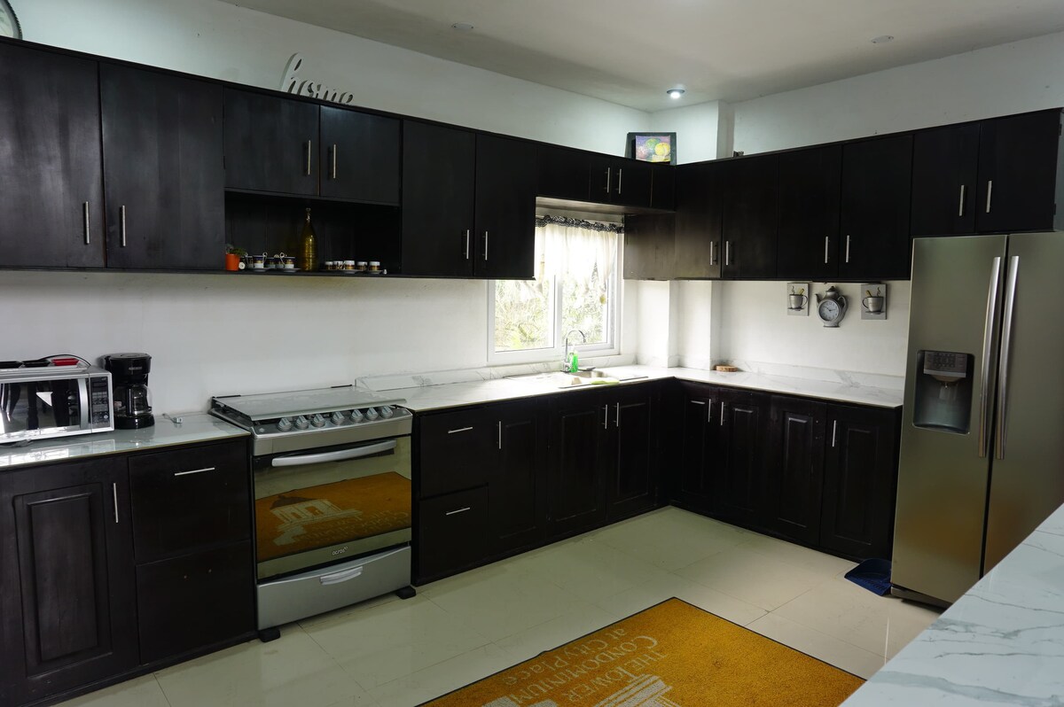 - familier eller venner - Gate/inngang med koden -To nivåer med terrasse og balkong - Inne i boligen med 24 timers sikkerhetsport. - 4 rom, 5 senger og 3 bad - kjøkken, spisestue og to rom - 2 parker, en dekket og en uten tak, med alternativer for mer gateparkering - Høyhastighets WiFi - Pile for å vaske klær manuelt og plass til å henge det - tre minutter fra Balneario, Meta Mercado og Talpetate-terminalen. - 5 minutter unna, kjøpesentre