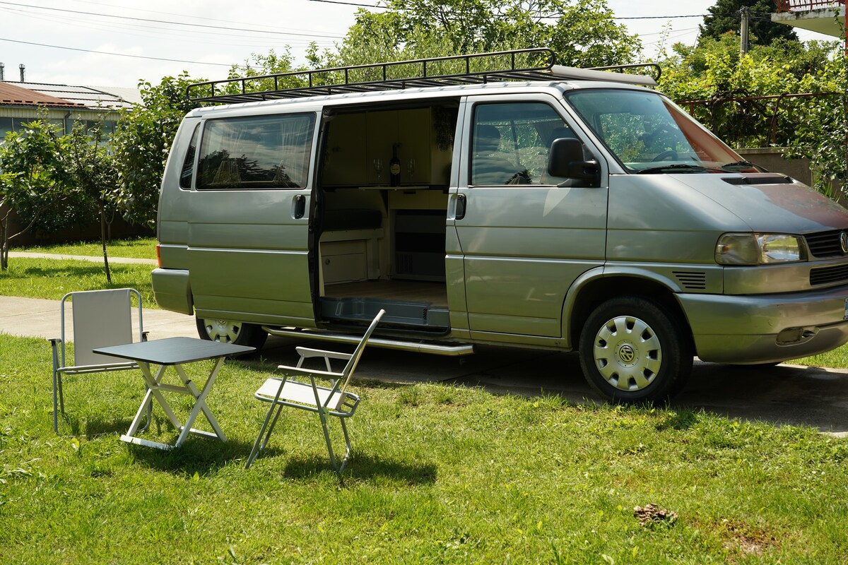 Hei, jeg heter Voyager, grå VW T4 Caravelle Campervan. Jeg ble født i 1999, så jeg er sannsynligvis yngre enn deg, så ta vare på meg. :) Legg ut på neste eventyr med meg! Enten du utforsker nasjonalparker, cruiser langs kysten eller oppdager skjulte perler i hele Montenegro, vil jeg gi deg den perfekte blandingen av komfort og bekvemmelighet. :) Bestill eventyret ditt i dag og opplev friheten på den åpne veien – den uforglemmelige reisen din venter! Velkommen! :)
