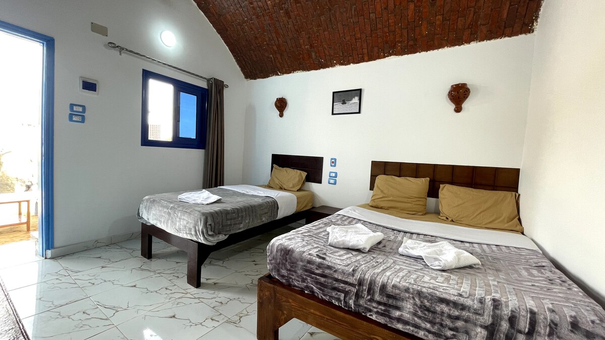 Dette veldig individuelle fancy backpacker-rommet er en av de fire kategoriene i vårt INMO Divers Home resort. Et lite hotell bygget i nubisk stil med 40 rom . Vi ligger ved sørenden av det virvlende sentrum som kan nås innen minutter langs strandpromenaden. En suite er et dykkesenter med all service fra snorkleutstyr til dykkerutdanningen. Rett foran oss har vi vårt vakre hus, bare her er det fortsatt mulig å dykke uten guide eller nyte snorkling