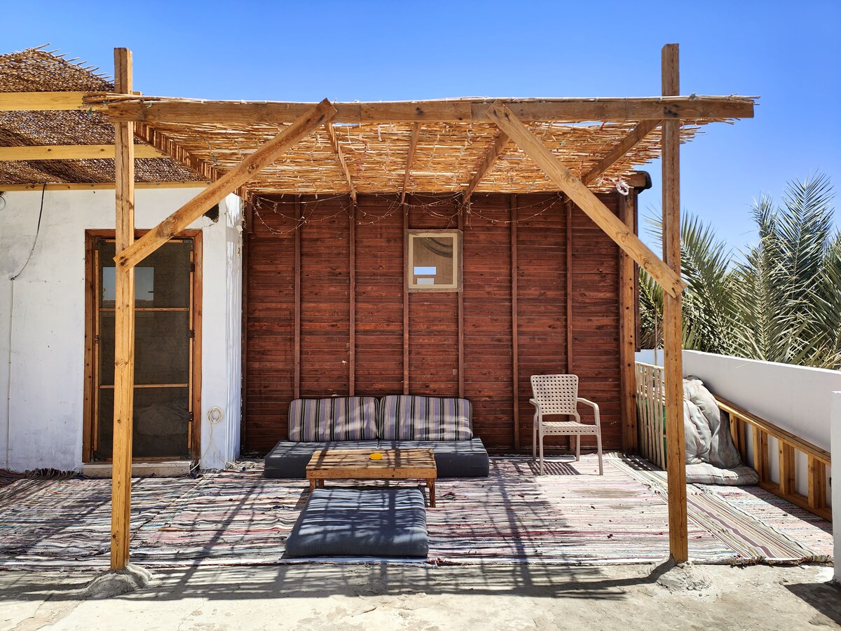 På dette stedet vil du elske den mest fantastiske pustbare luften og nyte den mest fantastiske unike høye utsikten over havet og fjellene i Dahab. Enten du jobber ved det komfortable skrivebordet eller slapper av på den romslige terrassen, har dette stedet alt. Det ligger også praktisk til i sentrum av Asala, Dahab, bare en kort spasertur på ti minutter fra stranden. Vær oppmerksom på at soveplassene bare er to enkeltsenger, og det er ekstra sofaer på terrassen.