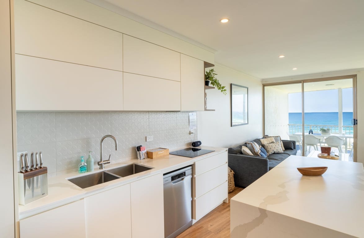 Denne leiligheten ved stranden er romslig, slik at hele familien kan spre seg. Med kanalisert klimaanlegg overalt, to soverom med queen size-seng, et soverom med to enkeltsenger, eget bad med badekåpe og balkong. Komplekset i feriestil har basseng, treningsstudio og spillrom. Fantastisk havutsikt fra balkongen og en sti som går rett ned til patruljerte Main Beach. Få mest mulig ut av nordlyset om sommeren med denne perfekt beliggende leiligheten.