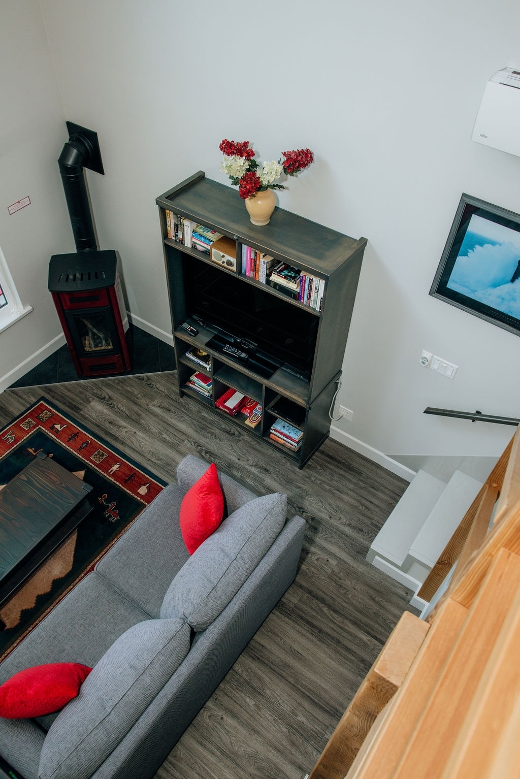 Loftshuset vårt er et sjarmerende, privat tilfluktssted med store, romslige vinduer som gir fantastisk utsikt over skogen og lydene fra jordbruksmarken. Det naturlige lyset strømmer inn i den åpne stuen, og skaper en lys og luftig atmosfære. Interiøret har et moderne design med høyt tak. Kjøkkenet er elegant og stilig, perfekt for matlaging mens du nyter det vakre landskapet utenfor. Ute har du en romslig terrasse hvor du kan slappe av og nyte de fredelige omgivelsene.