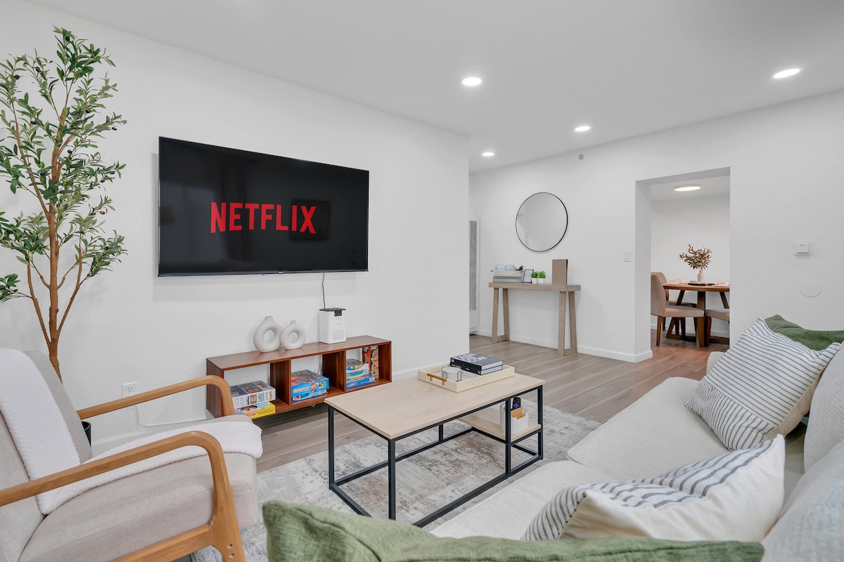 Nyt en stilfull opplevelse på et sted med sentral beliggenhet, et par kvartaler fra stranden. Dette stedet er dekorert av en designer og har alt du trenger hvis du er i byen for fornøyelse eller jobb. Gangavstand fra Whole Foods, Rite Aid, markeder, restauranter og stranden. 🚨MERK: Hvis profilen din på Airbnb ikke er verifisert med en offentlig utstedt legitimasjon, blir ikke bestillingen fullført. Dette er et veldig trygt nabolag, og vi jobber for å holde det slik.