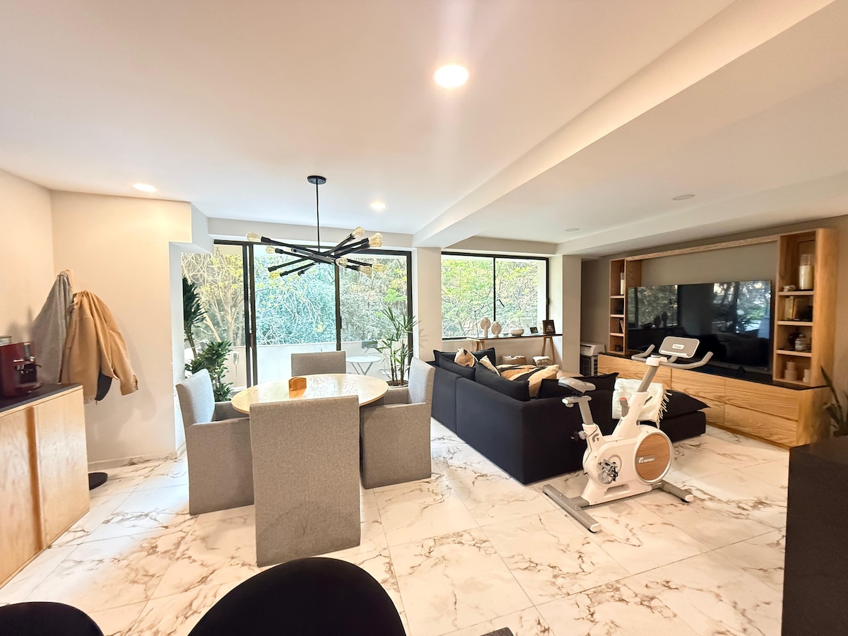 Fantastic Two bedroom apartment in quieta area of condesa for leisure or business. Open sheer curtains to let morning sunlight fill a modern loft through floor-to-ceiling windows. Prepare a simple breakfast and have coffee in the patio with a beautiful landscape. Cool space with two queen beds in separate rooms. This unit does not have a smart TV see all our listings in xolo stays Must submit to enter the property: - Number of guests - Must sign our internal agreement (house rules)