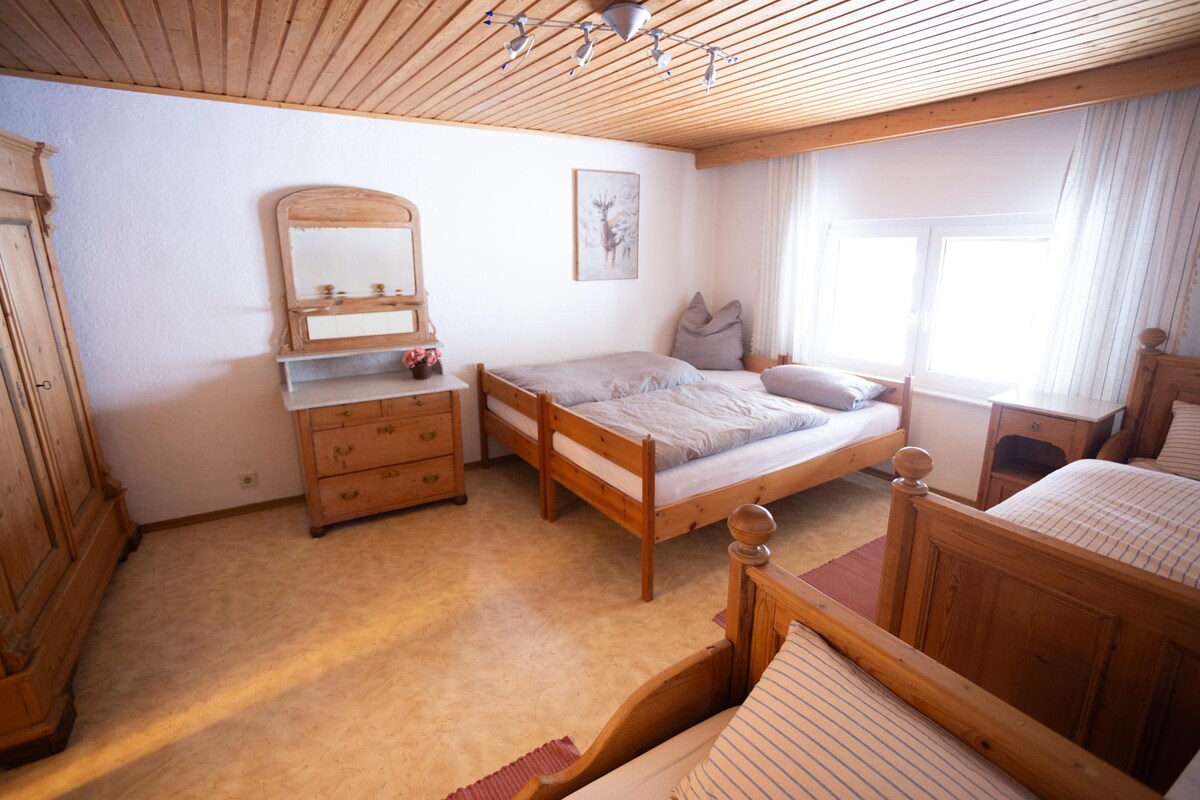 Nyt ferien din på det lille, rolige stedet - bare 4 km fra Furth i skogen. Du bor i den koselige leiligheten (100 kvm) for 2 til 6 personer, utstyrt med kjøkken og spiseområde, romslig stue, 3 soverom, bad, et separat toalett, balkong og plen, i et rolig område i utkanten. Ideelt utgangspunkt for aktiviteter og utflukter – inkludert fotturer, sykling, stavgang, skigåing og tennis.