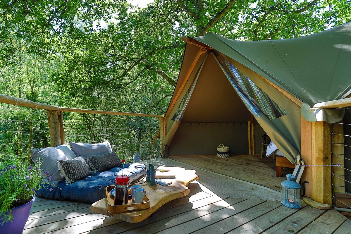 Dette trehuset er gjemt bort i 50 hektar privat skog. Den sitter høyt oppe i et gammelt eiketre på toppen av en bank og ser over en bekk. Det er det perfekte stedet å komme seg vekk fra alt. Å lage mat over en ekte ild og sitte ute under mørke stjernefylte netter. Du trenger ikke å ta med noe campingutstyr, det har til og med en varm dusj utenfor! Det er mange gangveier i nærheten for nydelige turer gjennom skog og mark. Puben Dragon ligger 10 minutters gange unna, med god mat og en nydelig stor hage.