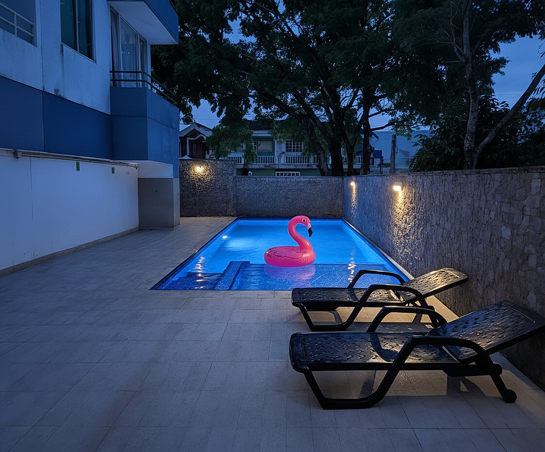 ✨Din urbane oase i Villavicencio✨ Romslig leilighet med tre soverom og to bad, panoramabalkonger og fantastisk utsikt. Garantert 100 % vannforsyning🚿, klimaanlegg, varmt vann, TV med over 1000 kanaler og ultraraskt fiberinternett. Fullt utstyrt kjøkken, vaskemaskin, tørketrommel og safe. Nyt privat parkering, døgnåpen vakttjeneste, heis og basseng🏊♂️. Sentralt beliggende i nærheten av butikker, restauranter og kollektivtransport for et praktisk opphold.