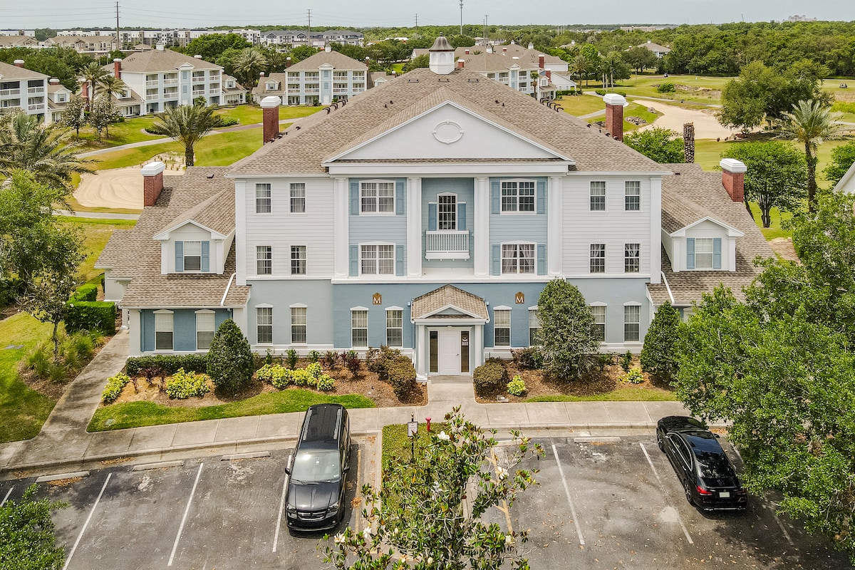 Nyrenovert leilighet med TO ROMSLIGE, PRIVATE SUITER, hvert med eget, fullt utstyrt bad – ideelt for familier, par og forretningsopphold. Beliggende i ChampionsGate, 19 minutter fra Disney og 30 minutter fra Epic Universe og Universal Parks. Bare fire minutter fra Omni Orlando Resort på ChampionsGate, som er populært for golf, konferanser og spesielle arrangementer. Få full tilgang til fasilitetene på Tuscana Resort uten ekstra kostnader, inkludert et oppvarmet basseng med utsikt over naturreservatet og et avslappende boblebad.