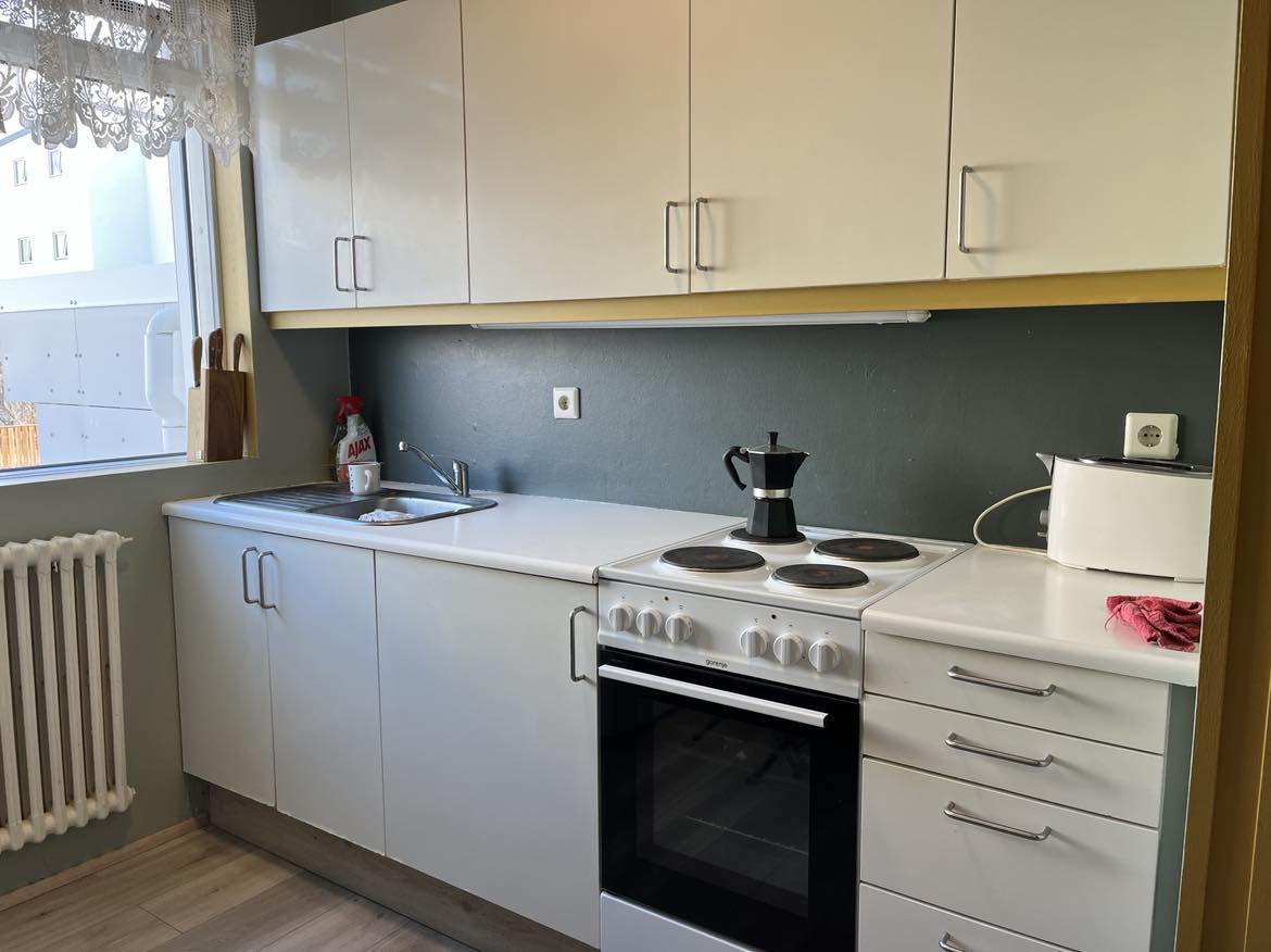 Har nettopp pusset opp hele stedet, oppgradert queensize-sengen og alt sengetøyet/dynen. Det var veldig dyrt, så jeg ønsker deg velkommen til hjemmet mitt. 😅 Det ligger midt i hovedstadsområdet, så veldig nær alt. (Jeg anbefaler Sky Lagoon på det sterkeste, du kan til og med ta en scooter i 5 minutter for å komme deg dit) Det har alt du trenger. Hvis ikke, gi meg beskjed. Gratis parkering – fullt utstyrt kjøkken og bad + to veldig fine soveplasser og mulighet for barneseng. Perfekt sofa å hvile på også.