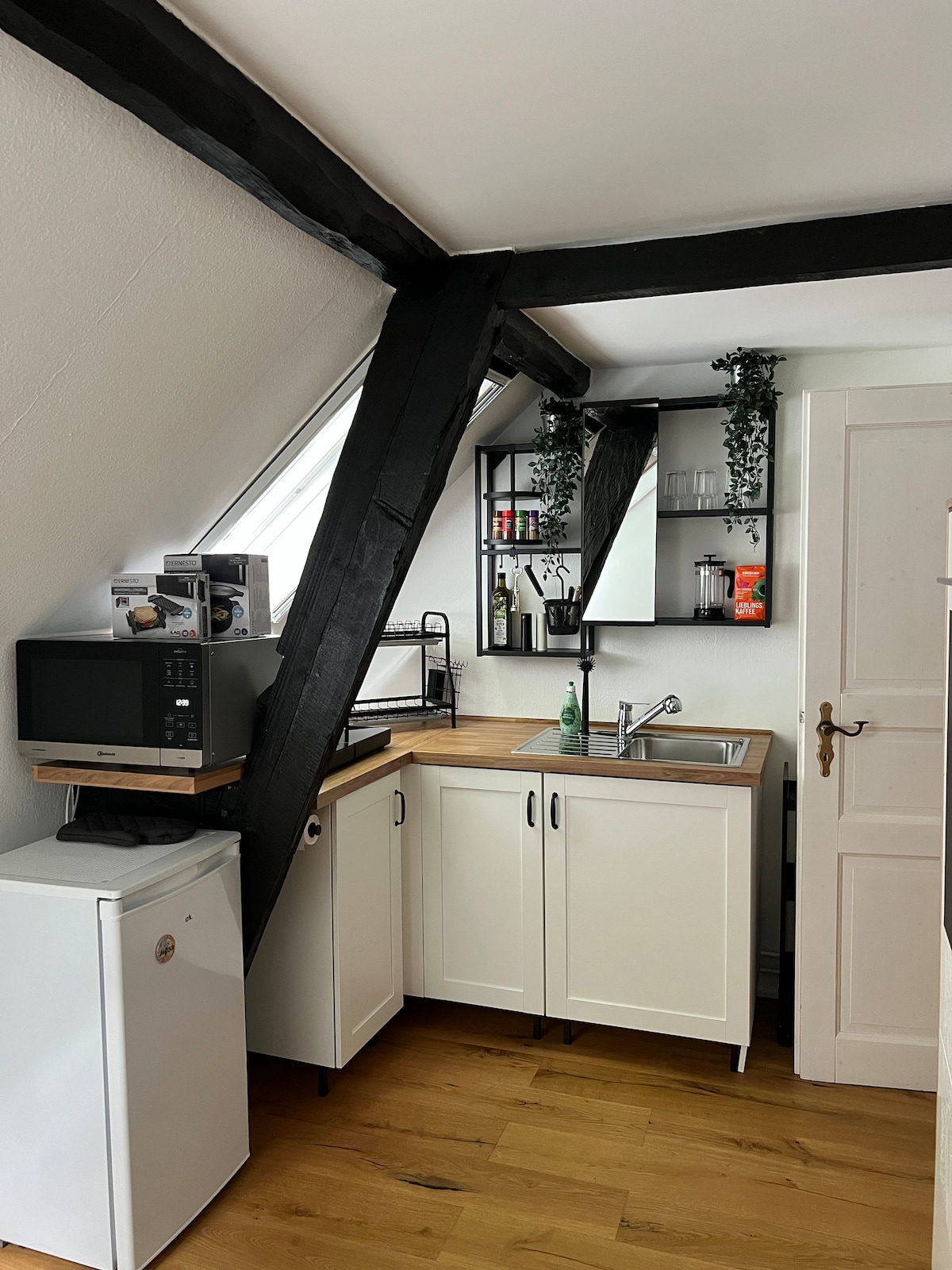 Leiligheten ligger i et oppført, tidligere skoghus, mindre enn 200 meter fra Rhinen og sykkelveien. Det ligger i skogkanten og utstråler en unik sjarm. Leiligheten har kjøkken med kjøleskap, komfyr og stekeovn. Det er også to senger på 1,40 x 2,00 m. Du kan enten avslutte kvelden komfortabelt på den lille terrassen ved inngangen eller med en film i hjemmekinoen med projektor, skjerm og 5.1-system.