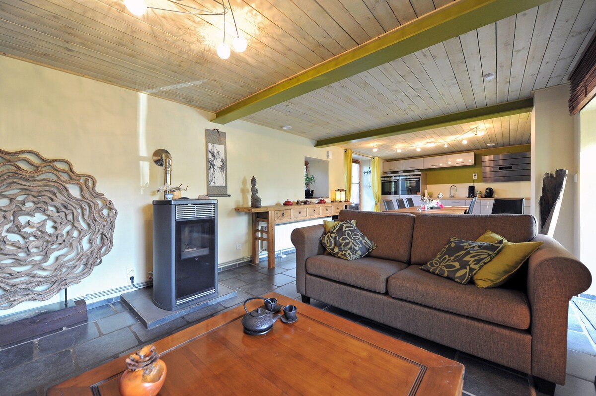 Velkommen til vårt «stråhus», rustikt og raffinert samtidig...noe som gjør all sjarmen! Huset ligger i sentrum av trekanten Libramont, Bertrix, Neufchâteau. Originalt , autentisitet : selvbygget siden 2008, huset og hagen er under utvikling og ferdig . Velkommen til AKDT-deltakerne! Egen inngang. Tilgang til mikrobølgeovn. To rom er tilgjengelige for gjestene våre.