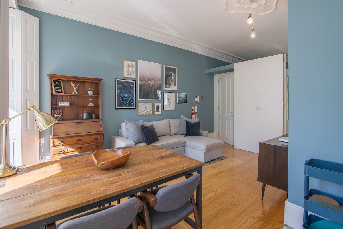 I Rosário, en tradisjonell gate i kunstdistriktet i Porto, omgitt av gallerier, kafeer, trendy butikker og restauranter, vil vår totalrenoverte kulturbygning fra 1800-tallet, med litt mindre enn 1000 håndmalte blå fliser på fasaden og en vakker blå dør, ønske deg velkommen. Forvent en fantastisk leilighet i første etasje med et fullt utstyrt, moderne kjøkken, stue, gjestebad, en fantastisk suite med en spektakulær Arcade-innbygd garderobe og et stilig hovedbad.
