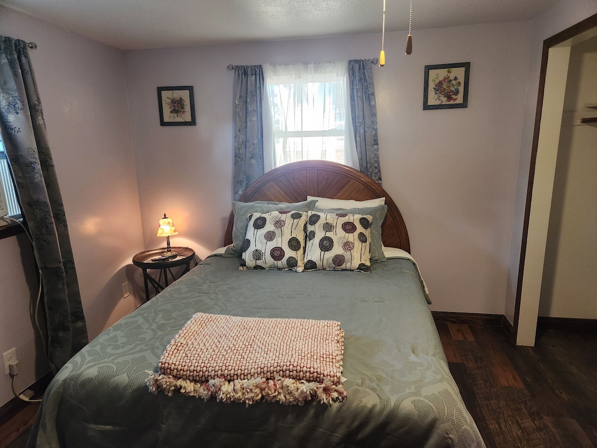 Fordyp deg i naturen og opplev magien i de frodige hagene, frittgående kaniner, alvegang, stjernekikkingsområde med teleskop, meditasjon i Soul Garden, fiske i den fullt utstyrte ørretbekken og mer. 5 minutters spasertur til City Park med frisbeegolf, mindre enn 0,5 miles til lokale restauranter og butikker. Kom og slapp av, foryng deg og lev ditt beste liv på Whispering Winds Micro Retreat! (420 og kjæledyrvennlig)