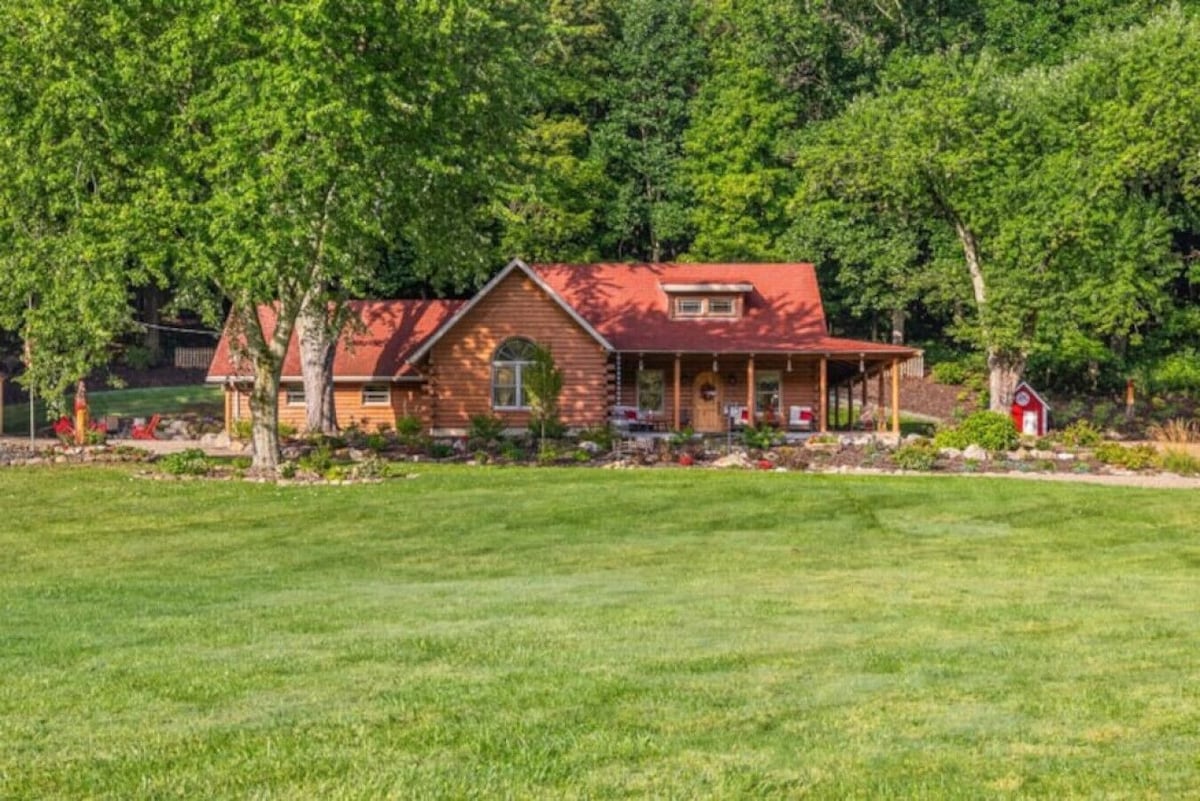 Avslappende tømmerhytte og boblebad i nærheten av Mohican Park