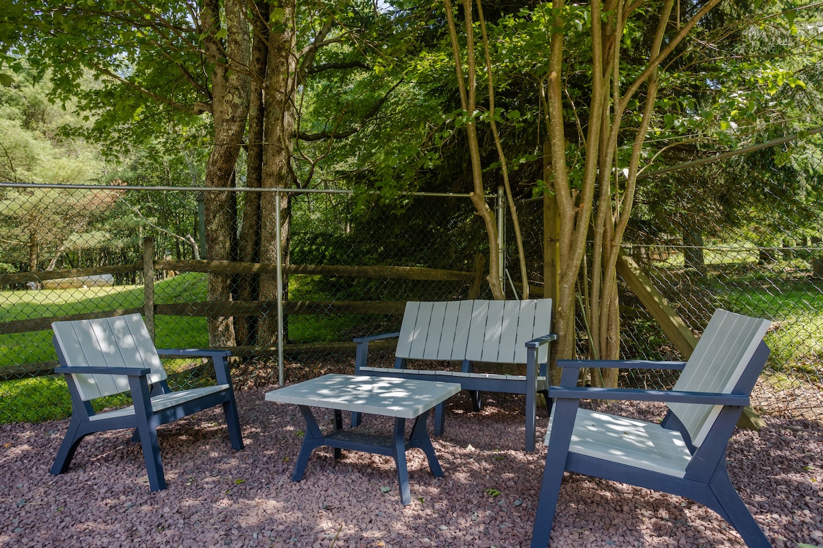 Slapp av med hele familien i denne nyrenoverte hytta i 2022. Denne hytta med Jim Thorpe A-ramme har en rekke komfortable detaljer og en avslappende atmosfære. Ferieboligen med tre soverom og ett bad har en fin lang liste over funksjoner og plass til opptil sju personer. Hjemmet er fullt utstyrt og har nok til å holde familien opptatt med tilgang til Bear Creek Lakes-fellesskapets fasiliteter (innsjø, basseng, tennis / basketballbaner). Tur i verdensklasse og den koselige byen Jim Thorpe ligger ti minutter unna.