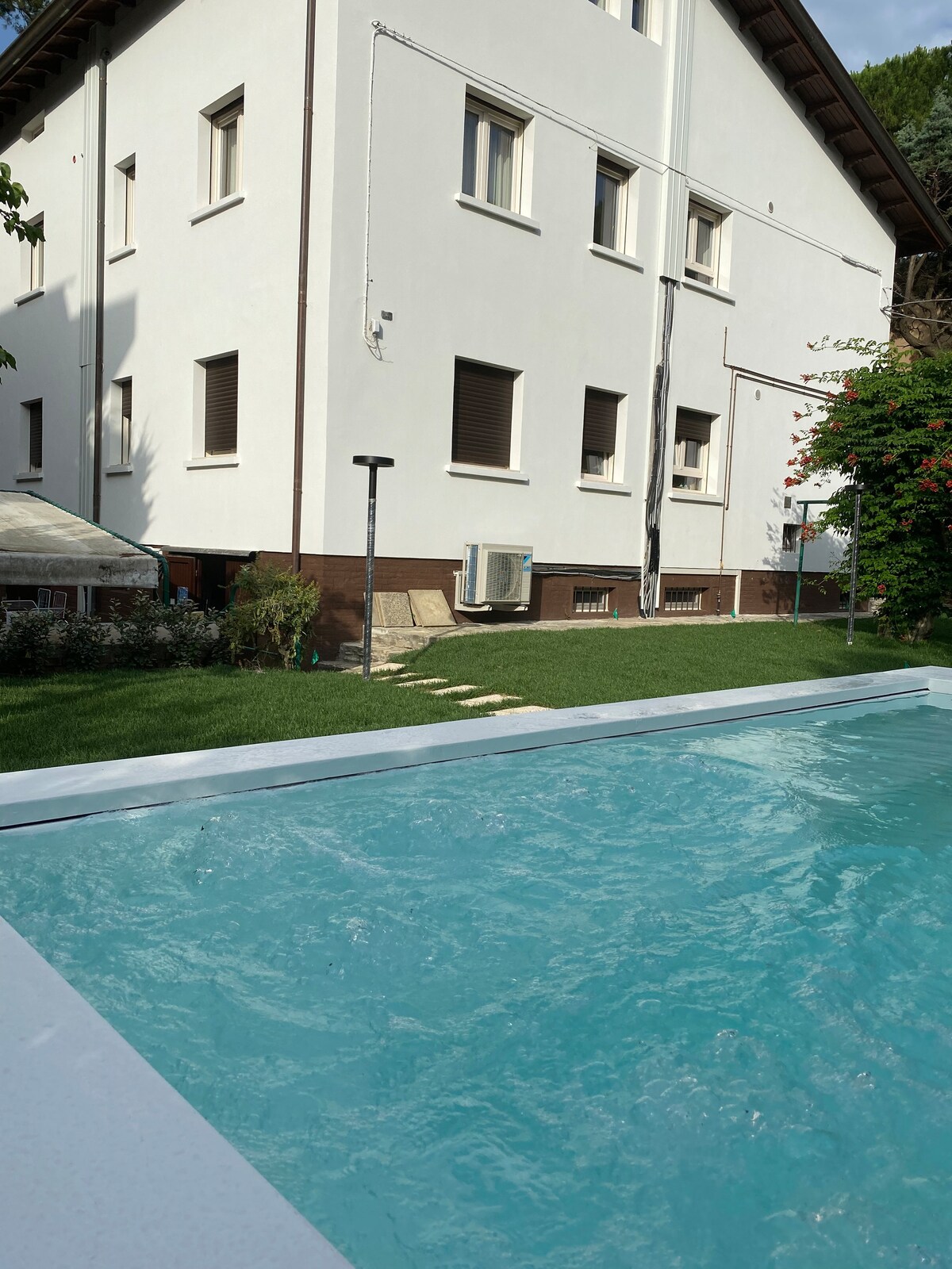Uavhengig villa med svømmebasseng, inngang,stor gårdsplass med sitteplass (URL SKJULT) kjøkken i første etasje med spisestue, romslig stue og (URL SKJULT) andre etasje med 3 soverom og to bad med vaskeri.Mansarda med utstyrt treningsstudio, dobbeltseng og bad, om vinteren også TILGJENGELIG TYRKISK BAD med aromaterapi og kromoterapi, ideelt etter en trening på treningsstudioet.