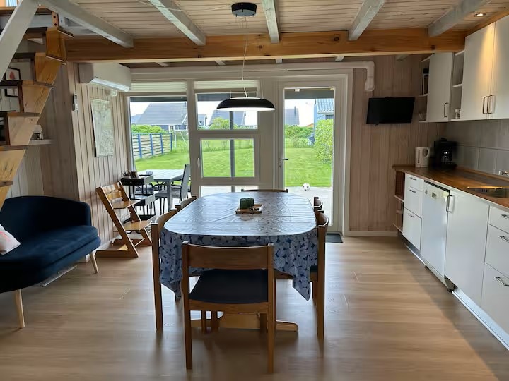Prisen er eksklusiv strøm- og vannforbruk. Drømmer du om en ferie mellom havet og fjorden? Dette koselige trehuset i sanddynene sør for Hvide Sande er din perfekte oase! Nyt lyse områder, utendørs spa og store vinduer med utsikt over det vakre klitlandskapet. Start dagen på terrassen med frisk sjøluft og avslutt den med avslapning etter dips og spaserturer langs vannet. Perfekt for både livselskere og eventyrlystne. Velkommen til drømmeferien din!