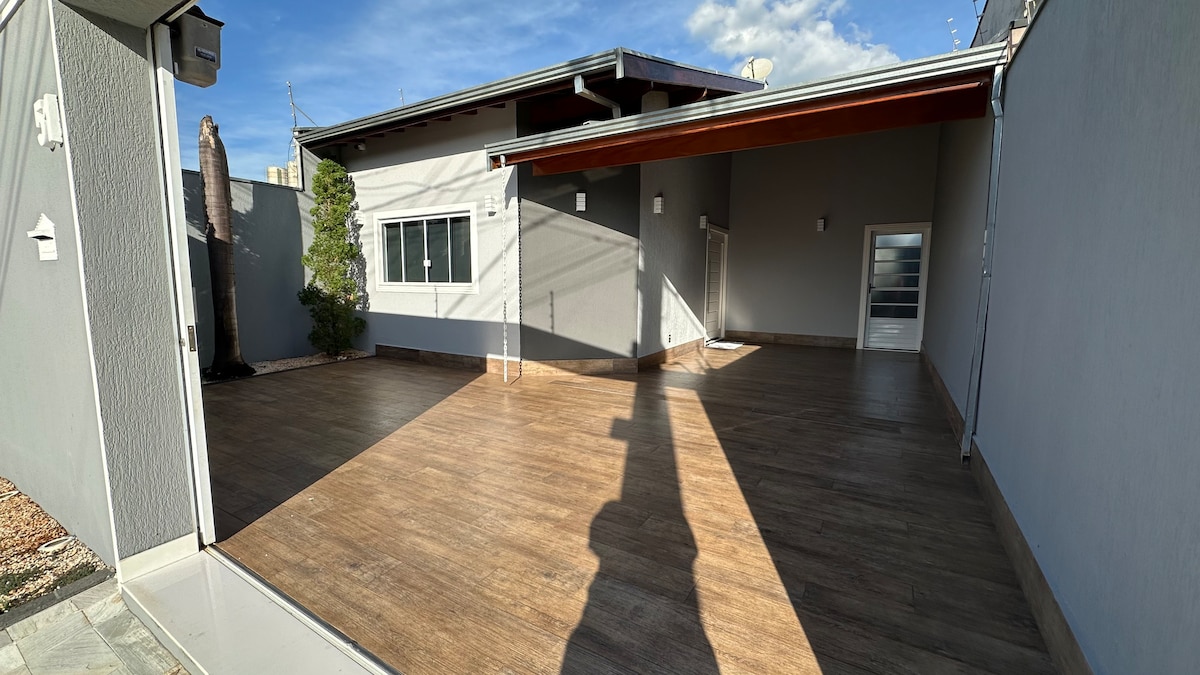 Hus med grill, solvarmebasseng og klimaanlegg i alle rommene! ☀️🏡🔥 Huset er perfekt for familier og venner, og har to soverom (én suite), tre bad, oppvarmet basseng, grill og fullt utstyrt kjøkken, komfyr med platetopp, stekeovn og mikrobølgeovn. Et koselig og ideelt miljø for de som søker fritid og ro. Ligger i Santa Bárbara, på grensen til Americana, med enkel tilgang til supermarkeder, bakerier og motorveier. 📍 Bestill nå og bare ha det gøy!