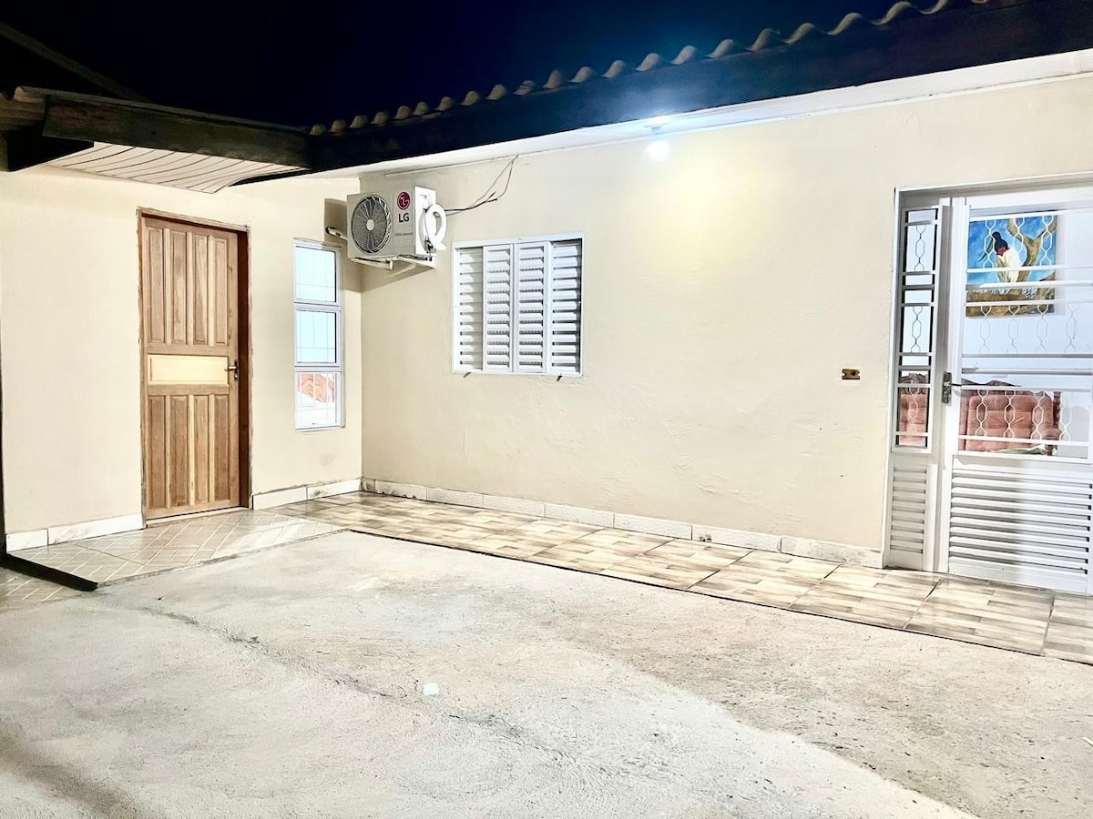 Casa bem localizada, bairro tranquilo e próximo de mercados, fica 5 min do centro. Quarto - 01 suíte climatizada e cama queen, mais colchão extra. Cozinha e sala interligadas e climatizada, cozinha com com utensílios para uso, açúcar e pó de café disponível. Sala com espaço para colchão e acomoda duas pessoas. Área de Serviços com máquina de lavar. Garagem, com portão eletrônico e cerca elétrica para maior segurança