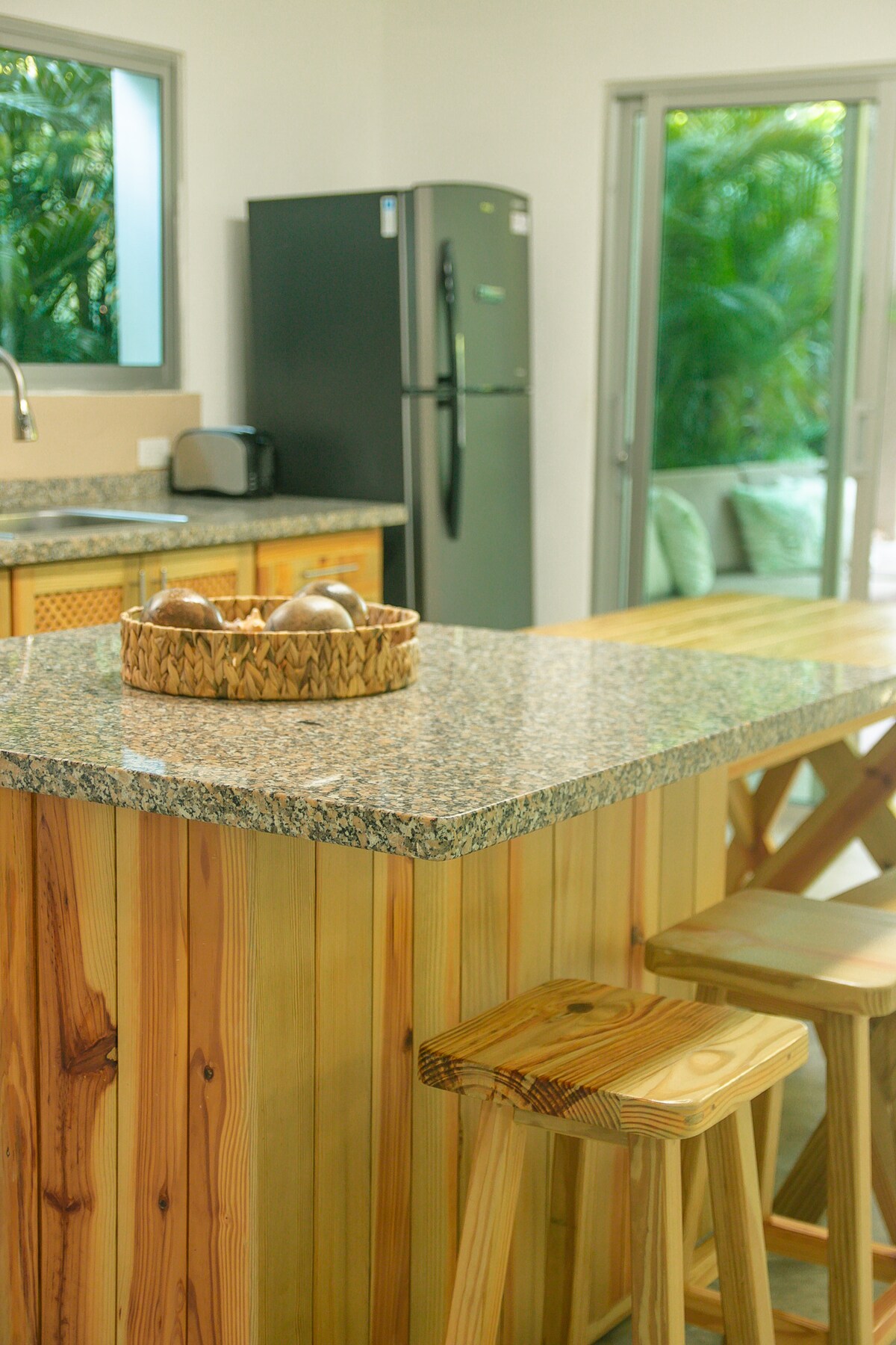 Vi tilbyr to identiske, private casitas, hver med en åpen planløsning med en seng og en uttrekkbar gulvsofa. Disse stedene er ideelle for et par eller en familie med opptil to små barn. Vær oppmerksom på at casitas ikke har kjøkken. Foreldrene mine, som bor i hoveddelen av eiendommen, kan imidlertid tilby kaffe om morgenen eller på forespørsel. Det er greit å be om å oppbevare eller varme opp mat, men hvis du trenger full tilgang til et kjøkken, er ikke denne eiendommen riktig for deg.