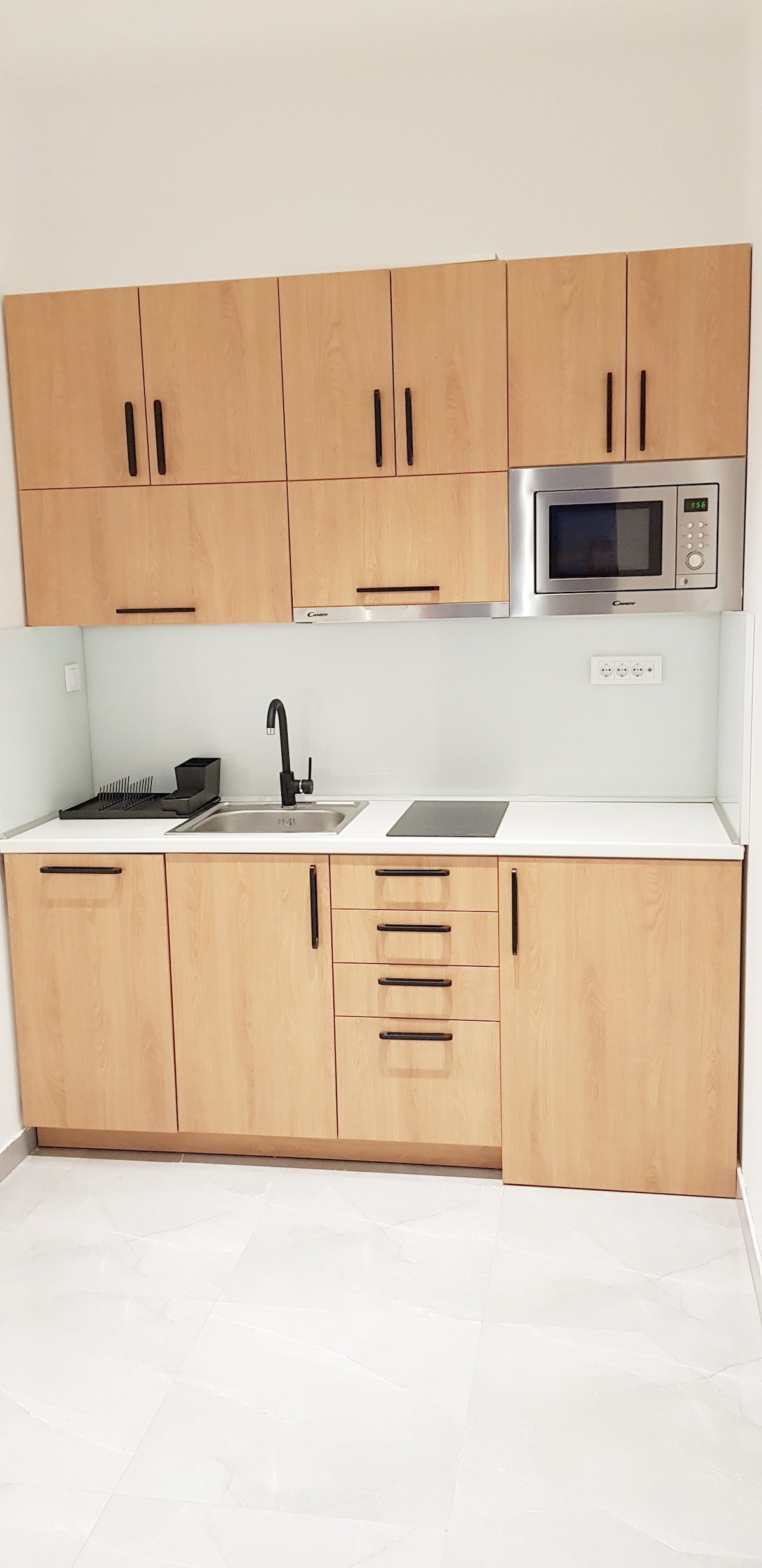 Leiligheten er totalrenovert for noen måneder siden, og alt er helt nytt. På soverommet er det en stor komfortabel dobbeltseng og en stor sovesofa i stuen. Alt i diskret LED-lys. På kjøkkenet kan du nyte en moderne flatskjerm komfyr, stekeovn, kjøleskap med fryser, oppvaskmaskin og vaskemaskin og et stort barbord. Badet er innglasset med marmorkeramikk. Det er veldig kompakt og rent. Badet er utstyrt med hårføner, håndklær, hygiene sett.
