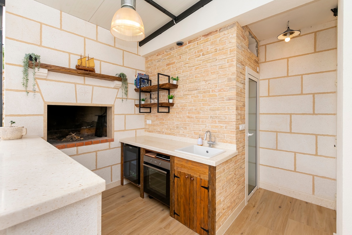 Sjarmerende, lite hus, med vakker hage, ideelt for måltider under stjernene. Flott utsikt over byen Trogir og havet. Ett soverom, kjøkken, stue, bad, fem minutters gange fra gamlebyen og åtte minutters gange fra stranden.