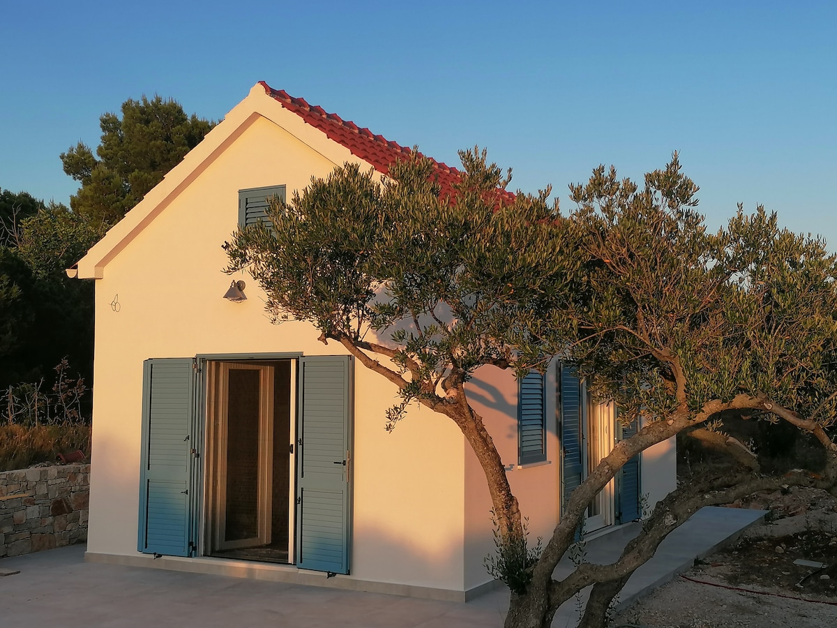 Nyt den vakre naturen rundt dette romantiske bostedet. Det lille huset vårt ligger i den gamle olivenhagen, med mer enn 80 oliventrær, og ligger bare en mile unna Milna, det nautiske senteret på øya Brač. Beliggenheten er lett tilgjengelig via asfaltert vei. Det er to gangveier for å nå de nærliggende Lučice Bay-strendene på sørsiden av øya. Selve huset har plass til fire personer – det er to gallerier, ett med queensize-seng og det andre med to enkeltsenger.