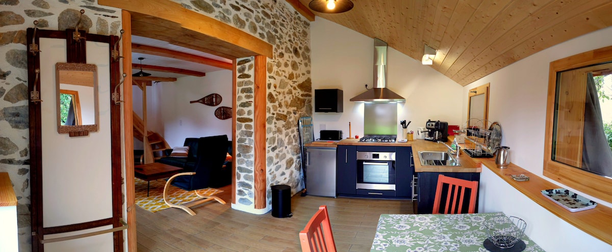 Vakker gite/feriebolig som ligger 800 m over havet i en gammel steingård oppusset med naturmaterialer. Giten ligger mellom beitemarker og skog med en utrolig utsikt mot fjellene i Pyreneene. Den siste tilgangen (75 meter) er til fots for å opprettholde roen på stedet. Fordyp deg i naturen, unnslipp forurensningen i byen … kom og slapp av! Vertene dine, Lee og Susie, tilbyr en 90 minutters vinyasa-yogatime eller en fem dagers introduksjon til håndveving – design og veg ditt eget stoff.