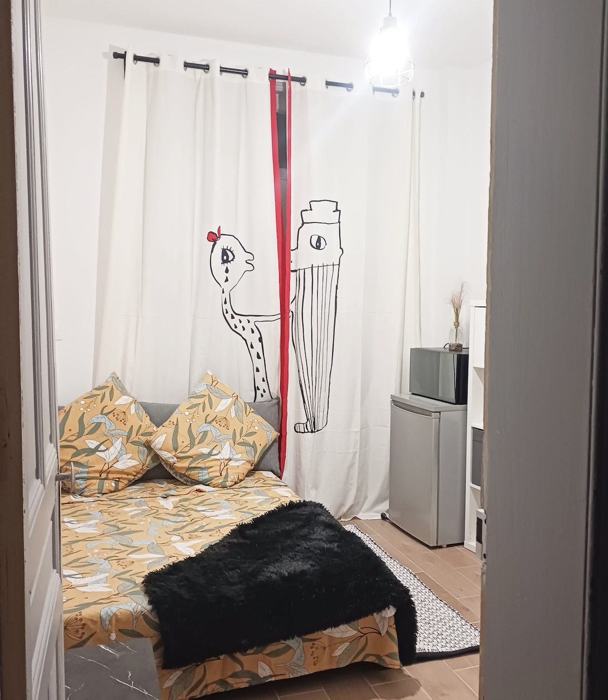 Nyt et studio i sentrum, fullstendig renovert og utstyrt. I nærheten av alle fasiliteter. I første etasje, i en gammel bygning med en indre gårdsplass tilgjengelig til fots. Parkeringsplass utenfor: nærliggende gater eller parkeringsplassen République. Servise, TV, vaskemaskin.