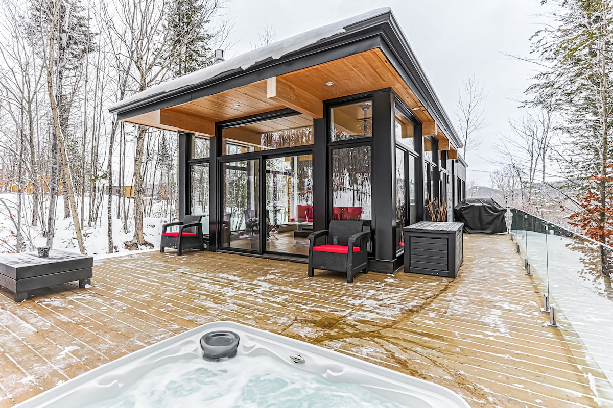 Contact us for our On-going Promotion! Secluded Architect Glass Cabin perched for breathtaking Mont-Tremblant mountains views! Klint Tremblant (Cliff in Danish) is the unique design so you can retreat to comfort and luxury. It is a majestically glazed architectural space combining natural simplicity & contemporary luxury, 10 min from village Mont-Tremblant & Panoramic terrace & Private Hot tub In Laurentian. Designed by Canadian famous Designer in shared domain of 1200 Acres!