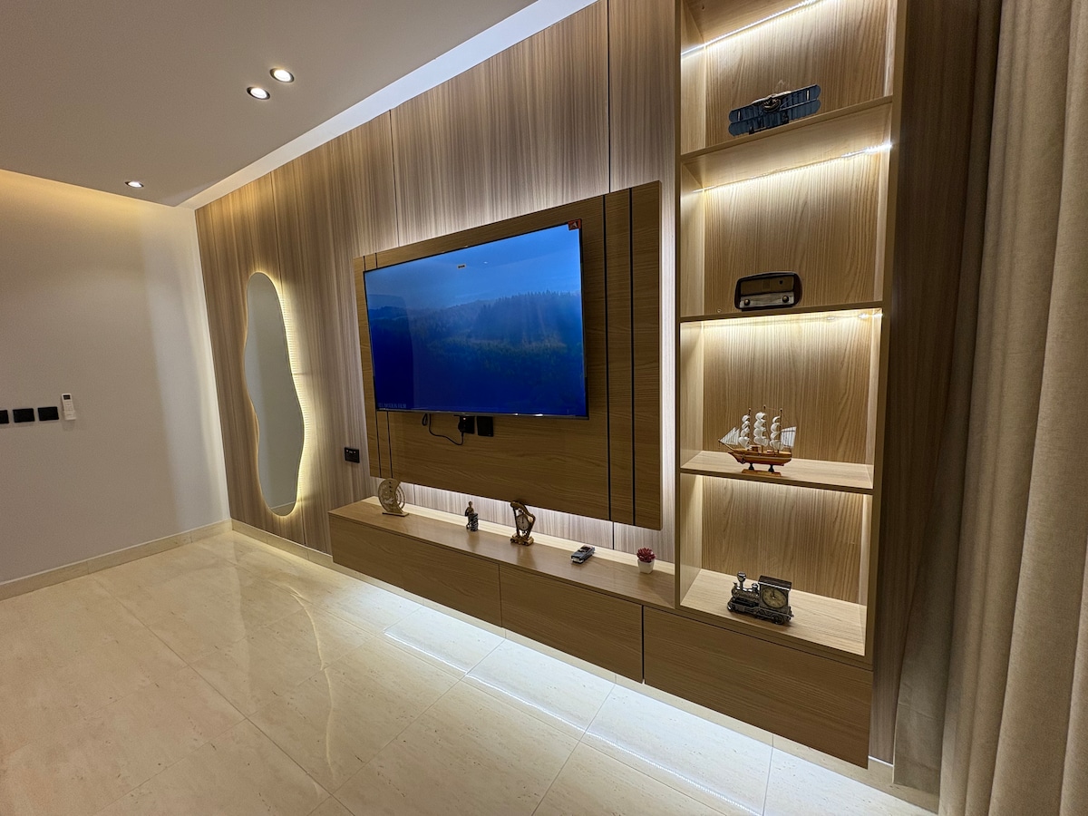 Elegant og ny leilighet med selvbetjening, lydisolering, soverom, stue og uavhengig kjøkken, moderne og integrert Den har detaljer og et vakkert og elegant format 💫 – Raskt trådløst nettverk - 65-tommers skjerm med alle programmer tilgjengelig – Kjøkken, vannkoker og integrerte verktøy - Integrert baderom (sjampo - såpe - sølv) I samme bygning er det dagligvarebutikk og vaskeri, og det ligger i nærheten av alle tjenester. Avstand til: King Khalid lufthavn 25 minutter Riyadh 15 minutter King Abdullah Financial City (KAFD) 15 minutter Boulevard 25 minutter Vi er beæret over å ha deg som vår andre plass og ser frem til ditt besøk 🌹🌹