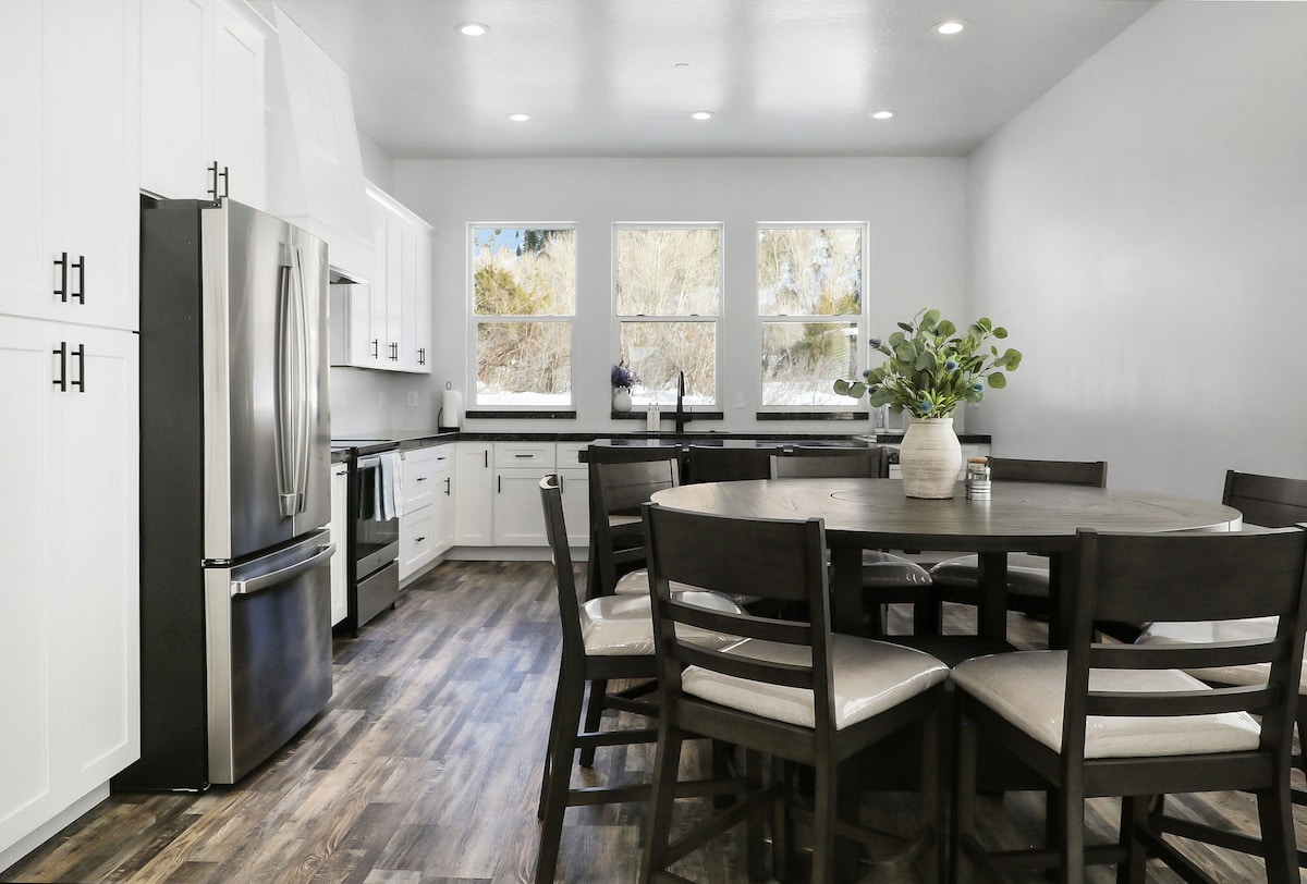 Mountain House med den beste utsikten, høyhastighets Starlink Internett, ta med snøscooterne dine og kjør rett fra huset til Wasatch National Forest, et fantastisk sted å ta med familien for å leke i snøen, i nærheten av offentlig jakt og fisketilgang. Sommeraktiviteter inkluderer ORV og turstier i nærheten, båtturer i den nærliggende Meeks Cabin Dam. Ha et koselig sted å lage mat til venner og kjære på den profesjonelle komfyren med seks brennere, og kos deg med vedovnen.