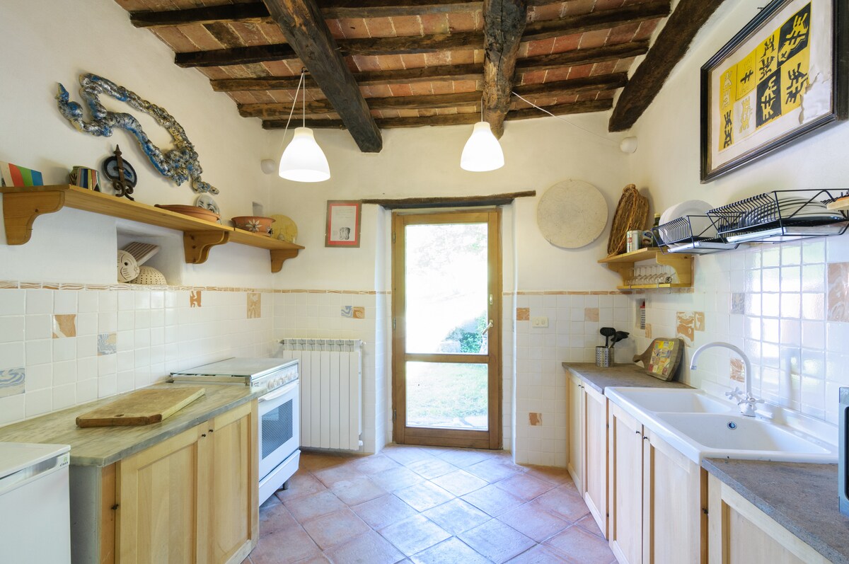 Leiligheten ligger i andre etasje og består av to soverom (mulighet for enkeltsenger eller dobbeltsenger på forespørsel), et bad, en stue og et kjøkken utstyrt for matlaging. (Vaskemaskin tilgjengelig fra kl. 09.00 til kl. 20.00 i vaskerommet.) Gratis parkering og trådløst nettverk. Strategisk beliggenhet for å besøke turistsentrene i Toscana. Vi er på landet, i hjertet av Crete Senesi, en bil anbefales for å være uavhengig og besøke den fantastiske toskanske landsbygda.