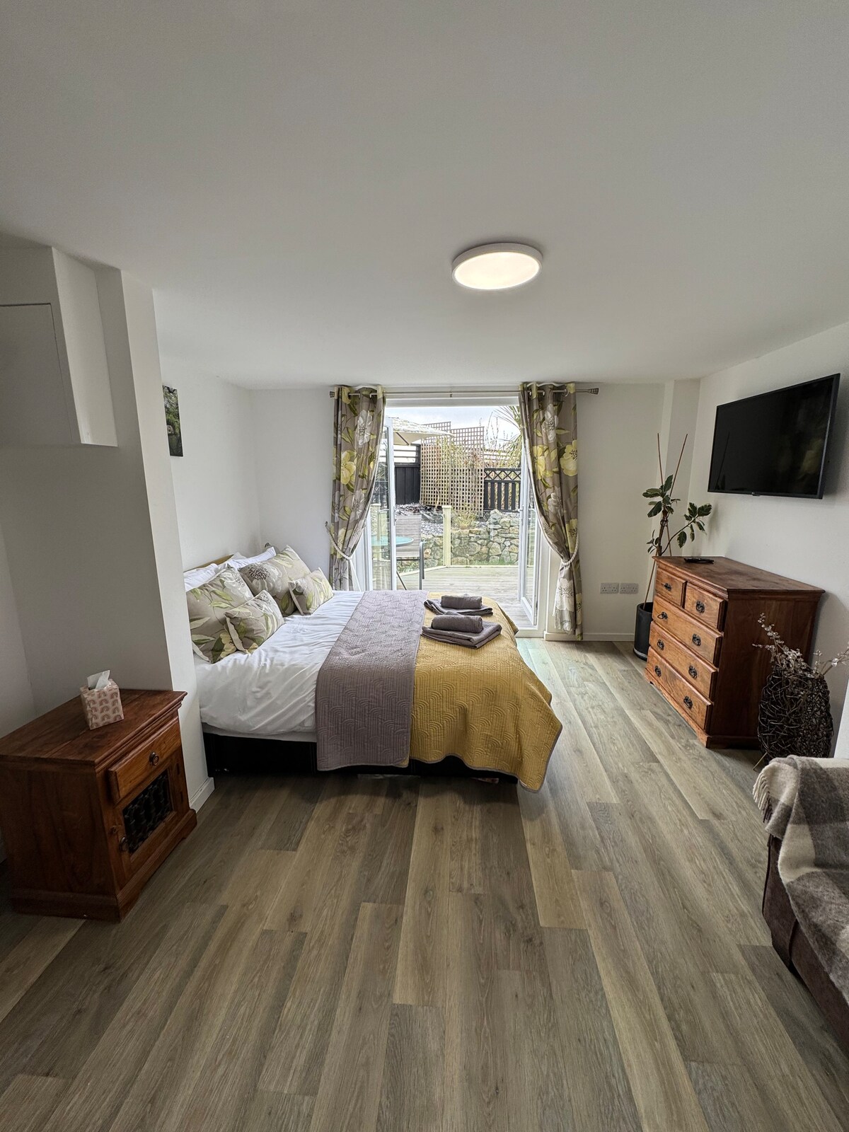 Studioet er et vakkert møblert, lyst og luftig sted på tomten til hjemmet vårt. Med vidstrakt, fantastisk utsikt over landskapet. Det ligger omtrent to miles fra St. Austell, og det er praktisk for strender, Eden-prosjektet, Heligan Gardens, Charlestown og nydelige landsturer. På grunn av Covid 19 har jeg lagt inn et ekstra forebyggende rengjøringsregime for din sikkerhet, inkludert bruk av UV-desinfeksjonslampe som vil bli brukt mellom hvert gjestebesøk.