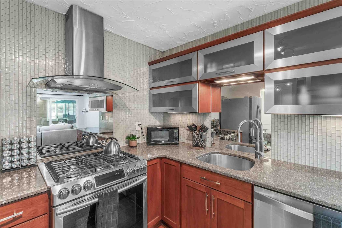 ☕ Helautomatisk espressomaskin med lokale, ristede bønner! Unik renovert bondegård i 1930-tallsstil, oppdatert med de nyeste moderne fasilitetene. Perfekt for å slappe av med familie eller venner. Ligger i gangavstand fra hjertet av Royal Oak. 15 minutter til Detroit sentrum. 7 minutter til Ferndale eller Detroit Zoo. Lynraskt fibernett (500–600 Mbps). Strøm filmer på den 65 tommers mini-LED-TV-en. Huset er fullt av karakter. Tilpasset steinarbeid inn og ut.