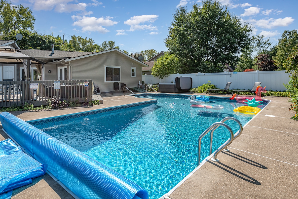Romslig Rochester-hjem med oppvarmet basseng og boblebad!
