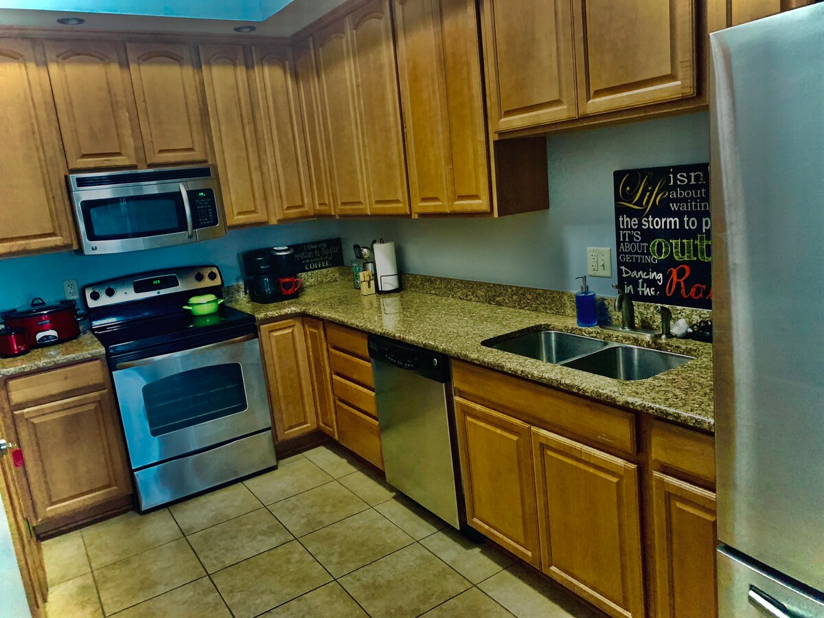Hjemmet vårt med tre soverom og to bad har en moderne følelse med gårdshusflamme, det er koselig og lyst, og det har et åpent konsept. Den har en stor stue og et godt utstyrt kjøkken. Den delvis ferdige kjelleren tilbyr et vaskerom og et stort familierom med et bordtennisbord. Vi er familievennlige. To queen-senger oppe. Én queensize-seng nede. Én ekstra dobbeltmadrass tilgjengelig. Black Hawk Park 4 minutter. QC flyplass 8 min. Vibrant Arena 11 minutter. Augusta College 6 min. John Deere Pavilion 10 minutter.